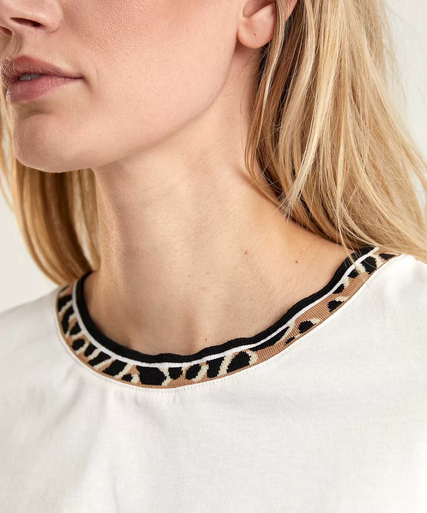 Walk On The Leoside Of Life Zegt Dit Marc Cain Sports Shirt Met Animal Biesje. Met De Versierde Hals En De Goudkleurige…