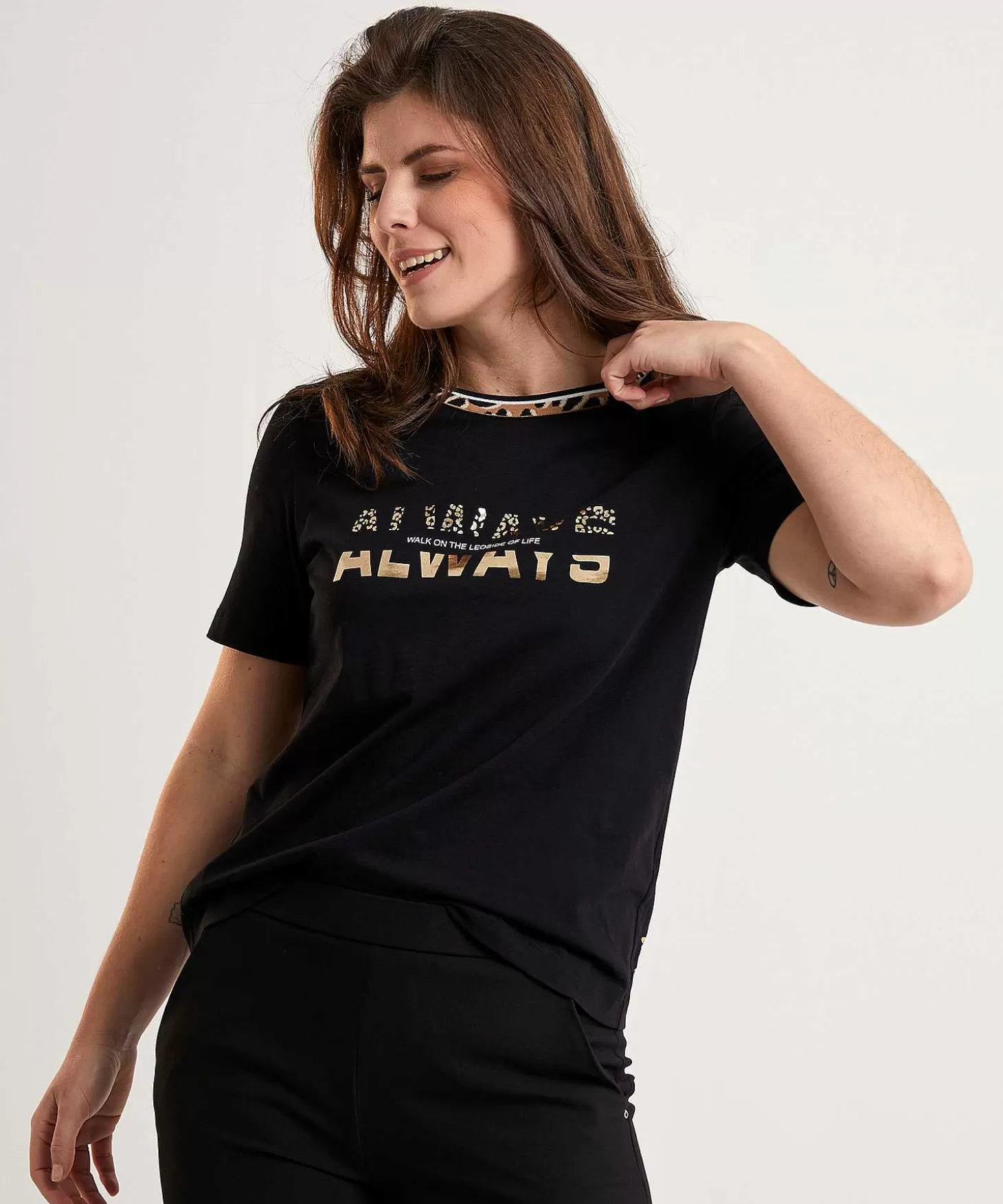 Walk On The Leoside Of Life Zegt Dit Marc Cain Sports Shirt Met Animal Biesje. Met De Versierde Hals En De Goudkleurige…