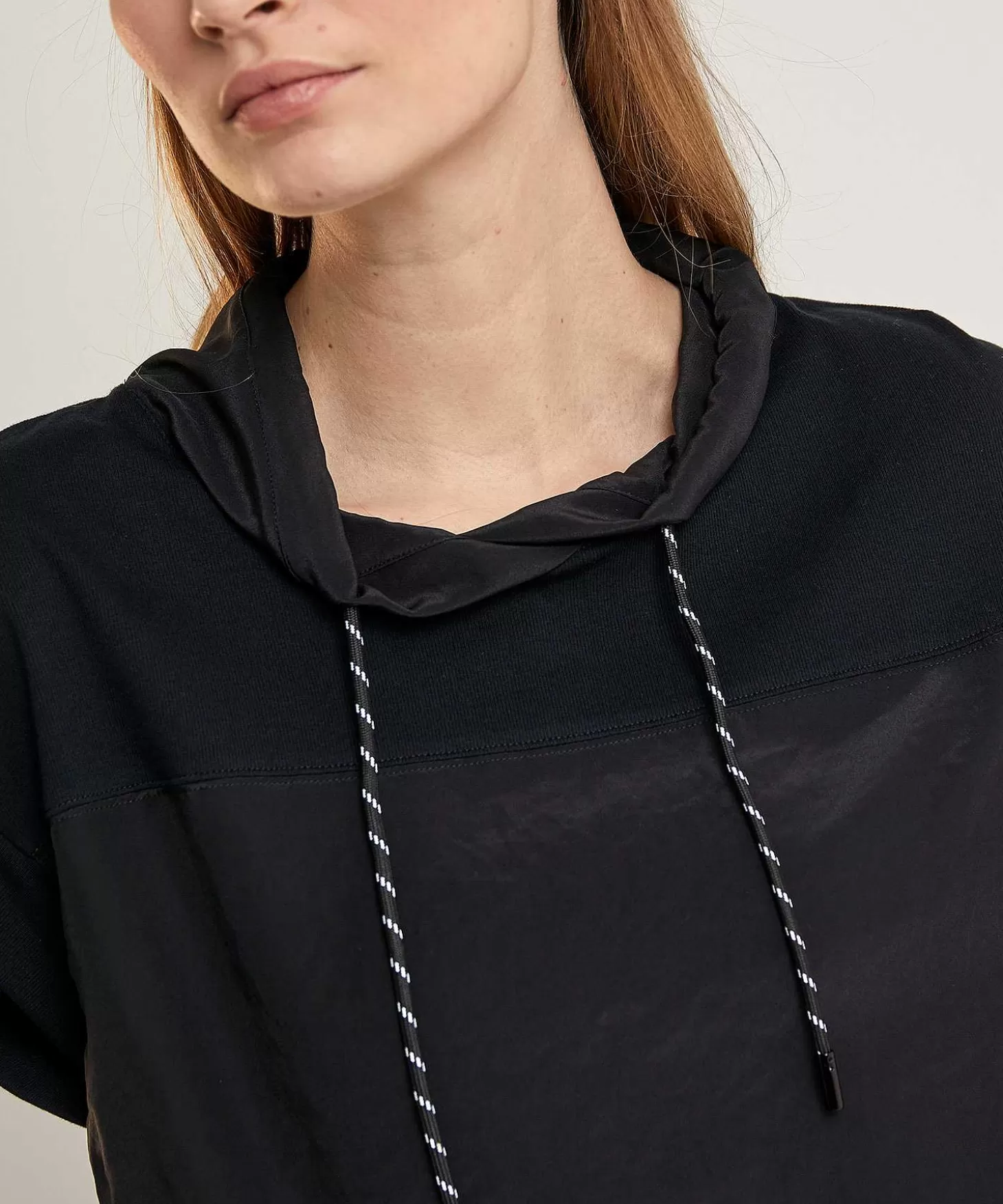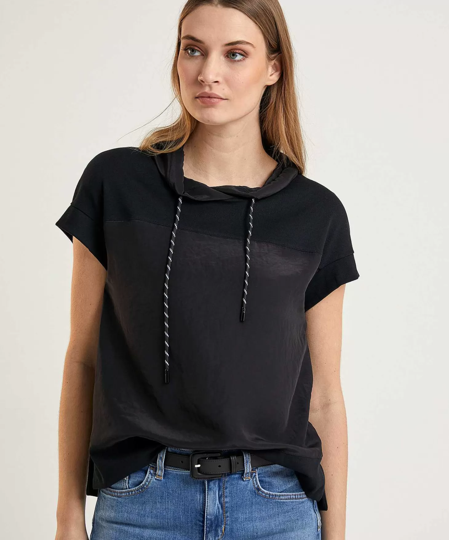 Speed Up Your Life Met Het Marc Cain Sports Shirt Met Col. Voel Je Haar Zachte Ribbeltricot En In Het Voorpand Deels Parachute ‘Zijde’ En Zie Je Haar Relaxte Col Met Striklinten, Kort Aangeknipt Mouwtje En De Brede Zoom Met Zijsplit? Je Draagt Haar Met De Marc Cain Sports Plissé Rok + Sneakers En Wat Dacht Je Van Samen Met De Marc Cain Wide Leg Jeans En Laarsjes? Uit Het Thema: Speed Up! Samenstelling: 94% Katoen, 6% Elastan. Stof 2: 59% Polyester, 41% Gerecycled Polyester.
