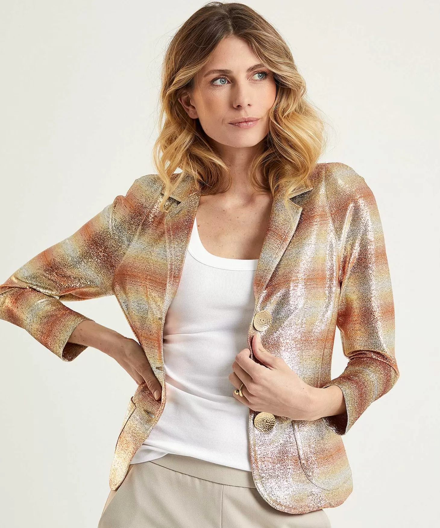 In Sprankelend Lurex Viert Deze Ml Collections Blazer Het Leven. Zie Je Haar Schitterende Metallic Weefsel In Een Subti…
