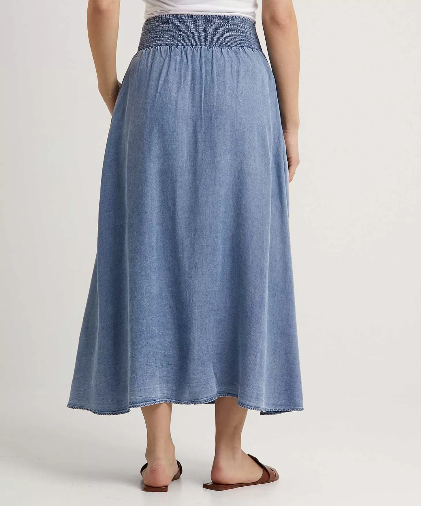 In Streelzachte Soft Denim (Lyocell!) Is Deze Moscow Rok Ready For Spring & Summer. Voel Je Haar Soepele Materiaal In Medium Wassing En Zie Je Haar Gesmokte Elastische Tailleband, Steekzakjes En A-Lijntje In Maxi Lengte? Je Draagt Haar Met Knitwear, Een Blouse, Sweater Of T-Shirt + Sneakers, Loafers Of Sandaaltjes. Deze Pip Rok <Rockt Echt Elke Outfit En Je Draagt Haar Soepeltjes De Seizoenen Door. Samenstelling: 100% Lyocell.