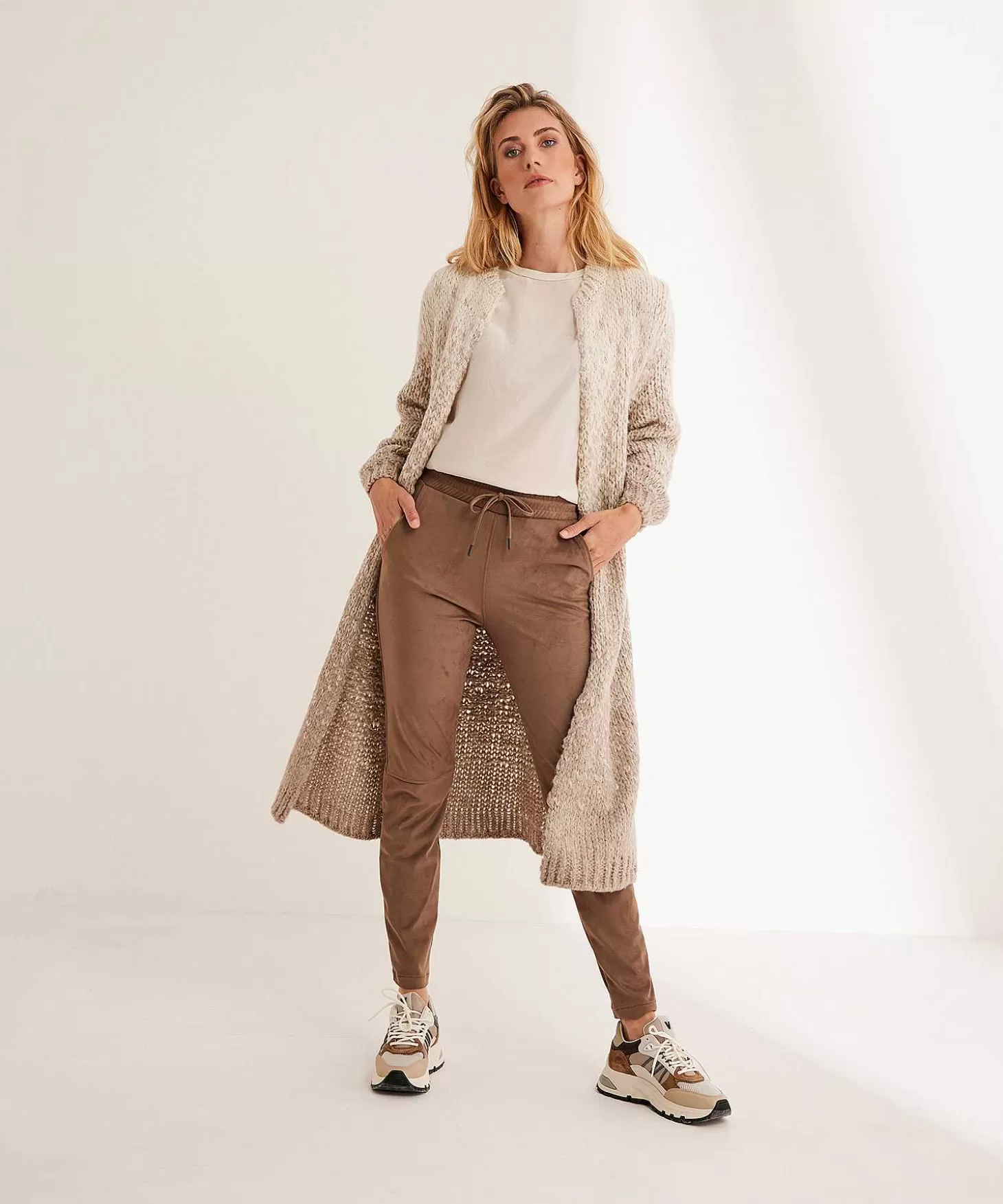 Met Deze Suèdine Moscow Jogger Ga Je Warm En Comfortabel Op Modepad. Voel Je Haar Streelzachte Suèdine En Zie Je Haar Minimalistische Lijntje? In Neutraal Taupe Met Een Elastische Tailleband Met Striklinten En Een Pas Achter + Deelnaden Op Kniehoogte Heeft Ze Net Dat Extra’S. Je Draagt Deze Jogger Met Een Sweater + Sneakers Op Wandeling Of Bingewatchend Op De Bank. Maar Ook Met Een Witte Blouse (+ Blazer) En Loafers Of High Heels Ga Je Klassiek Sportief Naar Je Werk Of Een Feestje. Samenstelling: 84% Polyester, 16% Elastan.
