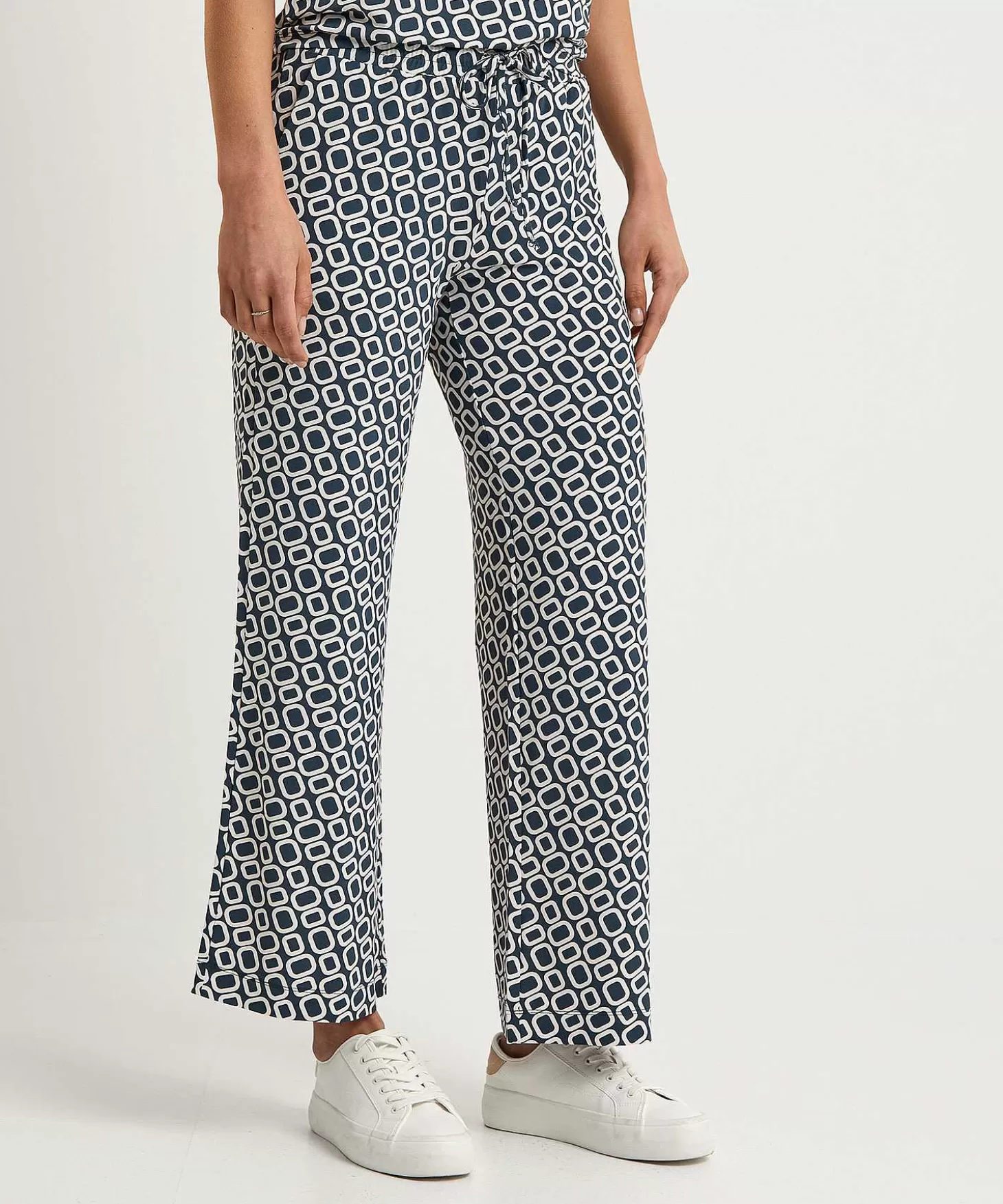 In Pittige Retroprint Brengt Deze No Man’S Land Palazzo Broek Direct Artistic Vibes In Jouw Outfit. Voel Je Haar Soepele Slinky Materiaal En Zie Je Haar Kleurpalet In Grijsgroen Met Offwhite? Dankzij Haar Elastische Tailleband Met Striklinten, Praktische Steekzakjes En Kortere Wijde Pijp Is Ze Klaar Voor Fashionable Actie. Je Draagt Deze Palazzo Stijlvol Naar Het Terrazzo Met Knitwear, Een T-Shirt + Vestje Of Een Blouse. Loafers, Sneakers Of High Heels Erbij En Je Bent Altijd Minimal Chic Onderweg. Samenstelling: 90% Viscose, 10% Elastan.