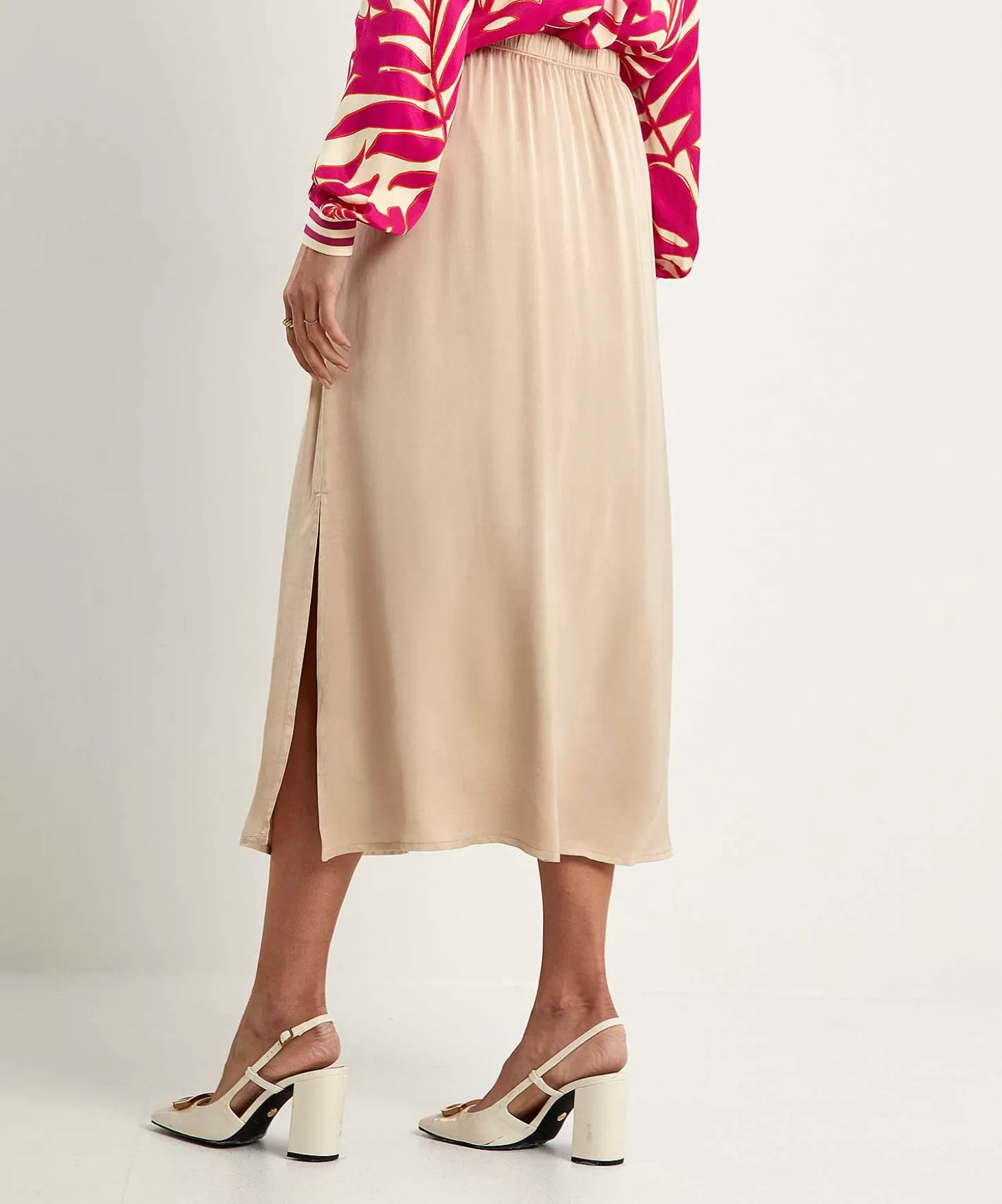 In Silky Viscose Is Deze No Man’S Land Rok Een Kameleon In Jouw Garderobe. Met Haar Neutrale Zandkleur, Zijdeglans En Minimalistische Lijntje Kan Ze Vele Stijlen Aan. Ze Heeft Een A-Lijn Model, Een Elastische Tailleband En Een Feminien (En Praktische) Zijsplit.
