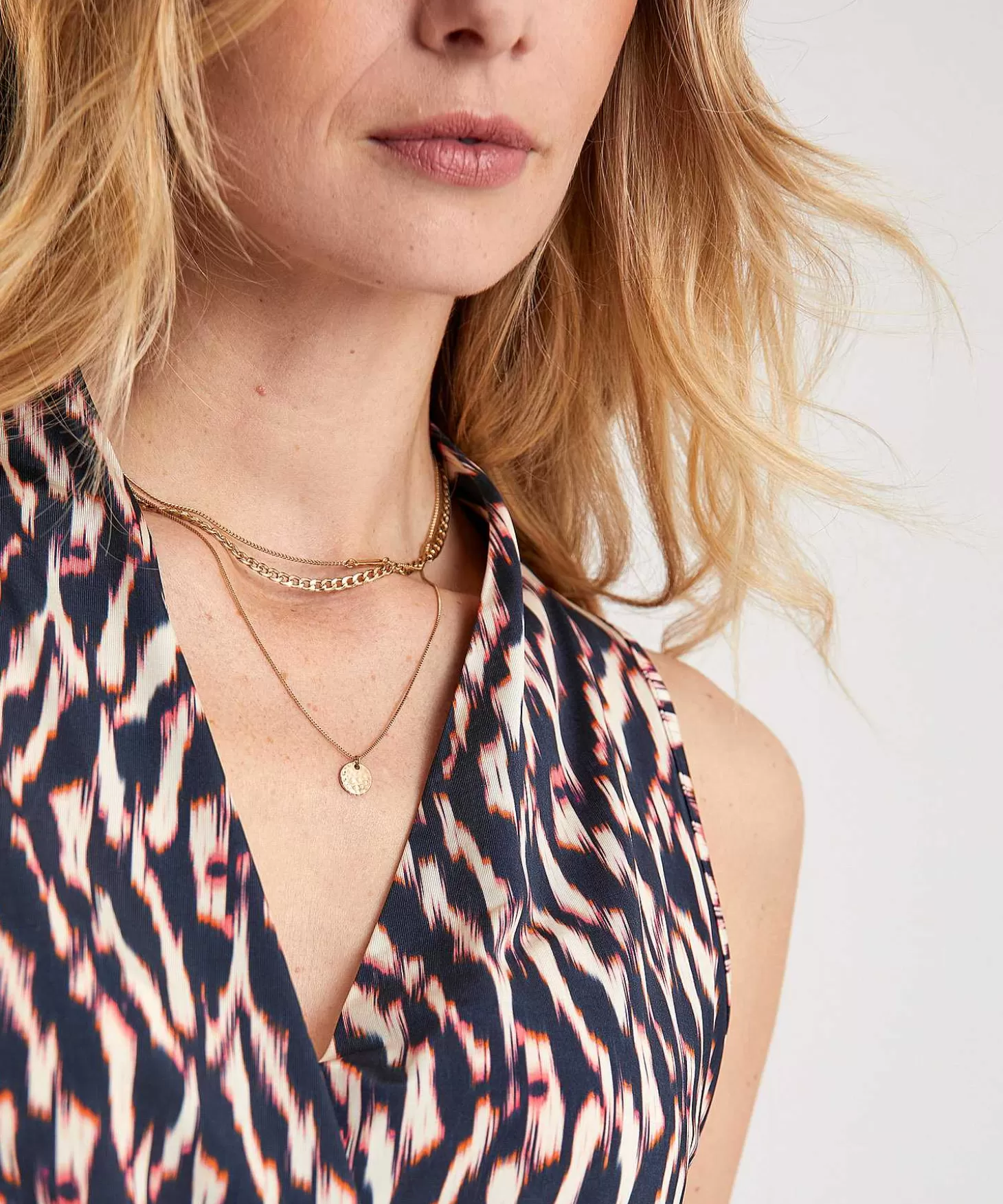 Deze Overslagtop Van No Man’S Land Combineert Een Blurry Print Met Slinky Materiaal. Zie Je Haar Kleurpalet In Zwart/Pink/Mandarin/Ecru En Voel Je Haar Soepele En Stretchy Stof? Met Haar V-Hals, Vaste Overslag, Fijne Plooitjes Op Taillehoogte En Mouwloze Model Is Ze Absoluut Summerproof. Je Draagt Haar Met De Matching Slinky No Man’S Land Palazzo Broek Met Blurry Print + Loafers Voor De Ultieme Co-Ord Set. Maar Ook Met De Matching Slinky Overslagrok En High Heels Lijkt Het Alsof Je Een Jurkje Draagt, Maar Het Is Een Luchtig Setje. Samenstelling: 91% Viscose, 9% Elastan.