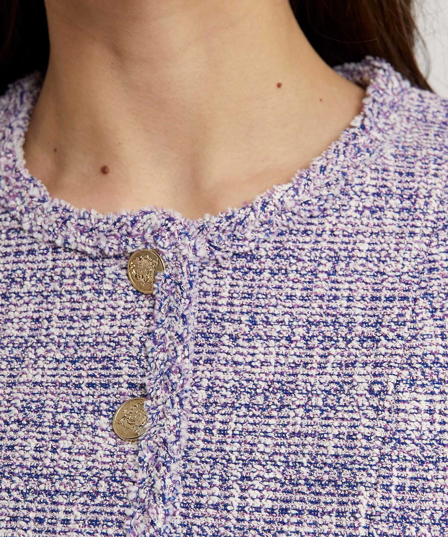 Dit Stretchy Bouclé Jasje Van Oui Flirt Met Het Parijse Vestje. Wat Een Klassieker Met Haar Minimalistische Model, Biesjes Met Franje, Metalen Logoknoopjes En De Met Lurex Doorweven Bouclé. Met Haar Karakteristieke (Fake) Klepzakjes En Rechte Lijnen Match Ze Perfect Met Een Uni Top En De Oui Bouclé Broek + Loafers Voor Een Tijdloze Chique Look. Maar Ook Met Een Singlet, Een Denim Rok Of Jeans En Sneakers Ga Je Klassiek Sportief Op Stedentrip Naar Parijs. En Had Ik Haar Vergrijsde Kleurpalet Al Genoemd Waarin Lila Elegant Overheerst? Oui Zeggen Was Zelden Zo Essentieel. Samenstelling: 47% Polyester, 35% Katoen, 14% Viscose, 2% Metaalgaren, 1% Polyamide, 1% Elastan.