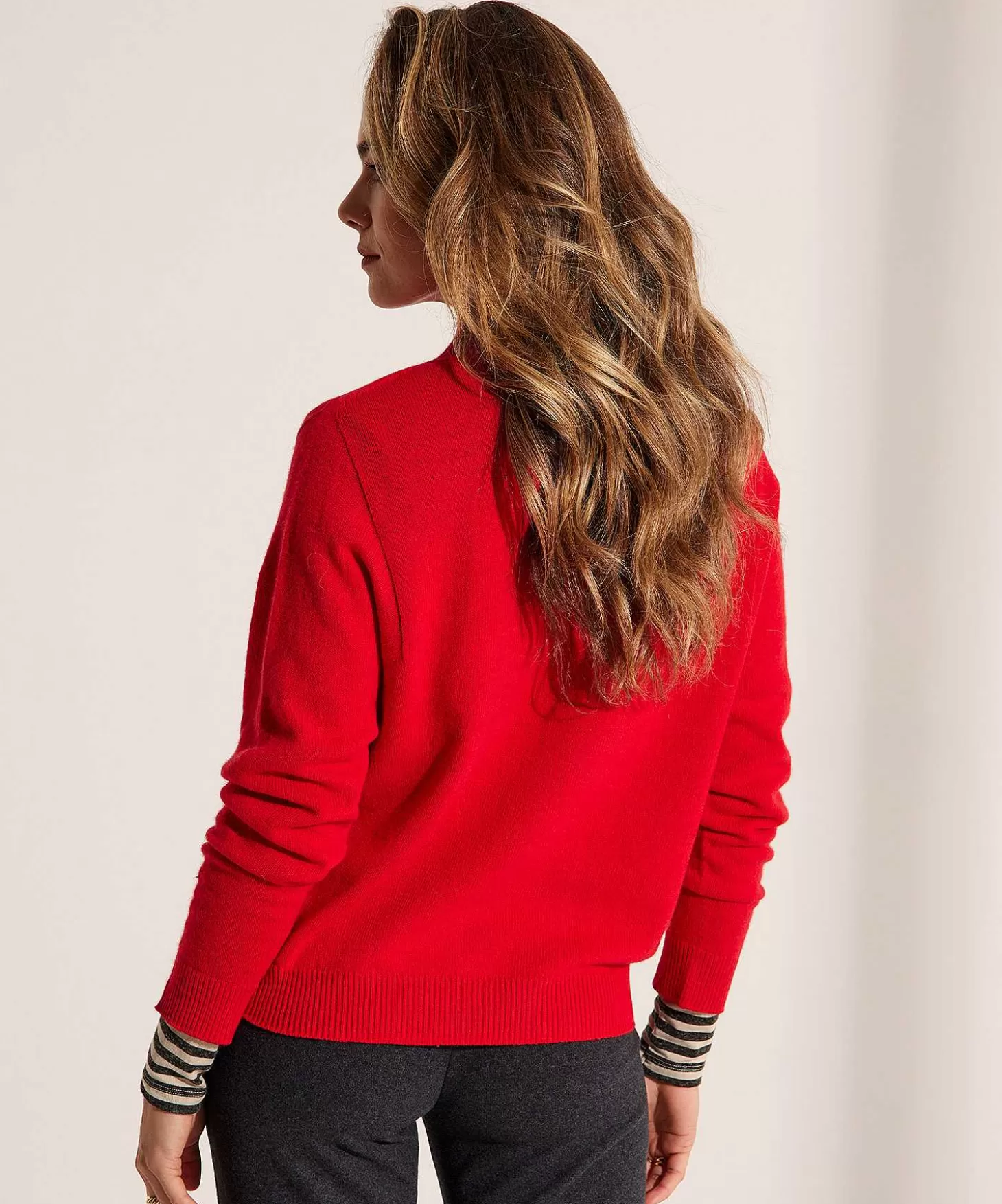 Fijne Winterse Trui In Een Middelfijn Breisel Waardoor Deze Trui Zowel Herfst- Als Winterproof Is. Door De Toevoeging Van Wol Is Ze Heerlijk Warm, Maar Kriebelt Ze Niet. De Trui Heeft Een Ruime Losse Pasvorm En Valt Tot Op De Heup. De Ronde Hals Heeft Een Opstaande Boord. Drapeer Een Royale Sjaal Over Je Schouders Of Kies Klassiek Voor Een Zijden Sjaaltje In De Hals. Draag Op Je Jeans, Wide Leg Broek Of Combineer Met Een Rok. Beschikbaar In Een Winterse Ecru En Een Warm Winterse Rood. Tip; Geweldig Om Het Helemaal In Één Kleur Te Houden Door Bijvoorbeeld De Rode Trui Te Combineren Met Het Rokje In Cooked Wool Of De Rode Pantalon, Beide Van Oui. Samenstelling: 50% Wol, 30% Polyamide, 20% Modal.