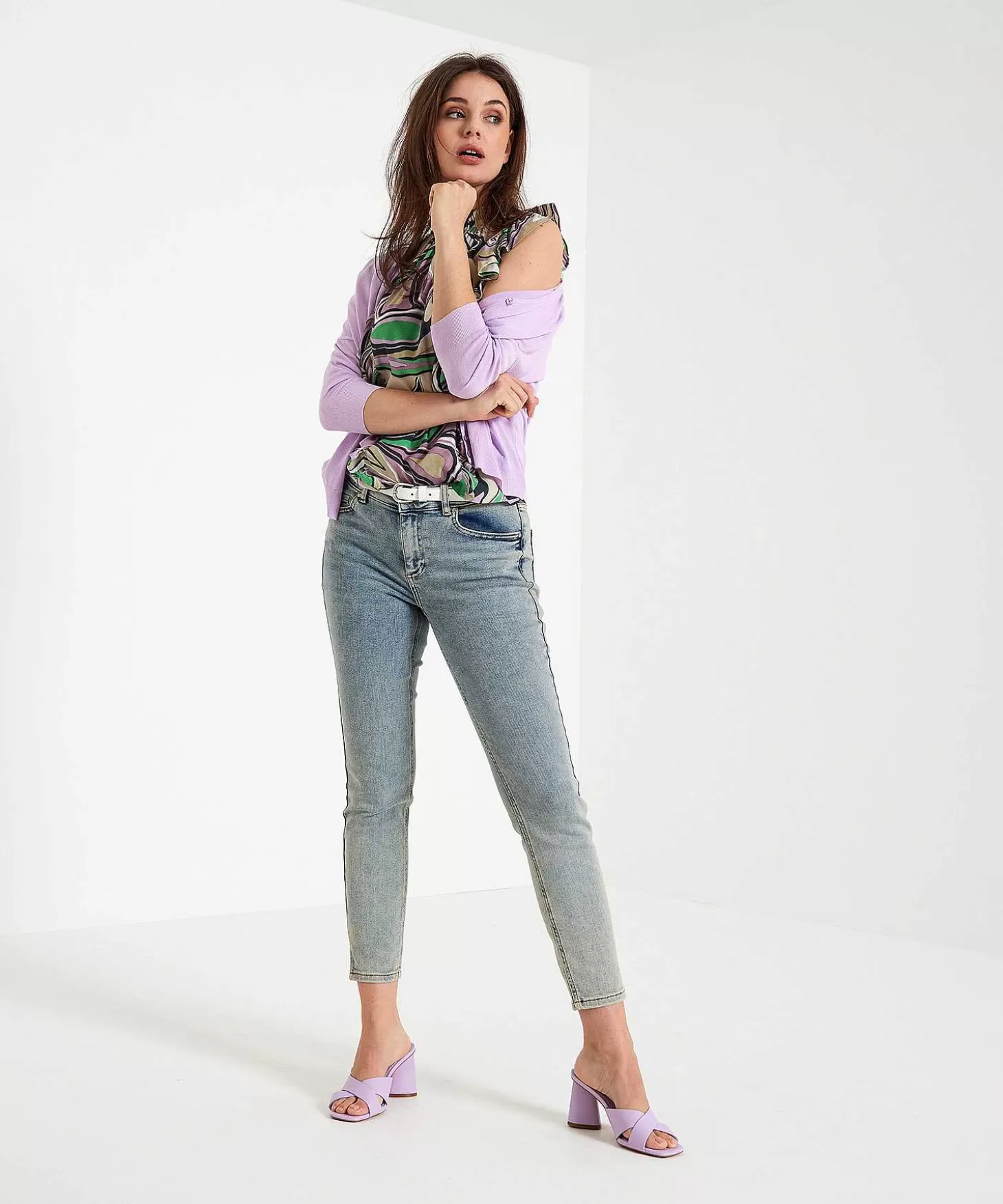 Less Is More Met Deze Oui Cropped Jeans Skinny. Wat Een Minimalistisch Model Met Haar Stevige Superstretch Denim, Cropped Lengte En Zijsplitjes Bij De Enkel. In Een Egale Wassing En Zonder Toeters Of Bellen Heeft Ze Alles Om De Perfecte Jeans Te Zijn. Ze Valt Mooi Aansluitend Onder Je Taille En Op Je Rug En Ze Staat Bij Veel Uit Jouw Garderobe. Van Streepshirt, Blouse, Blazer Tot Denim Jasje, Oversized Vest Of Klassiek T-Shirt. Loafers, Sneakers, High Heels Of Boots Erbij (En Straks Sandaaltjes) En Je Zegt Volmondig Oui Tegen Het Leven En Er Goed Uitzien. Samenstelling: 95% Katoen, 4% Polyester, 1% Elastan.