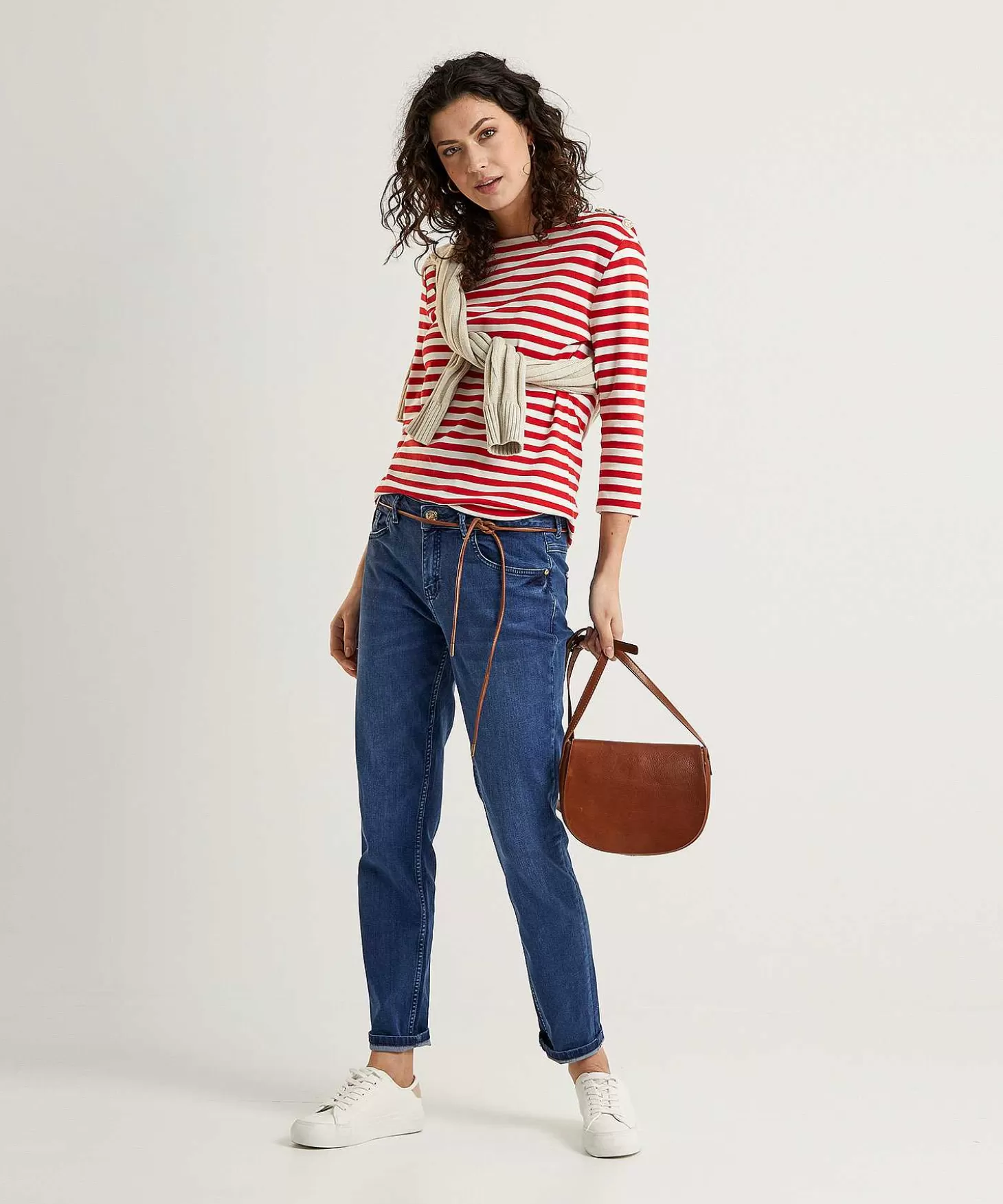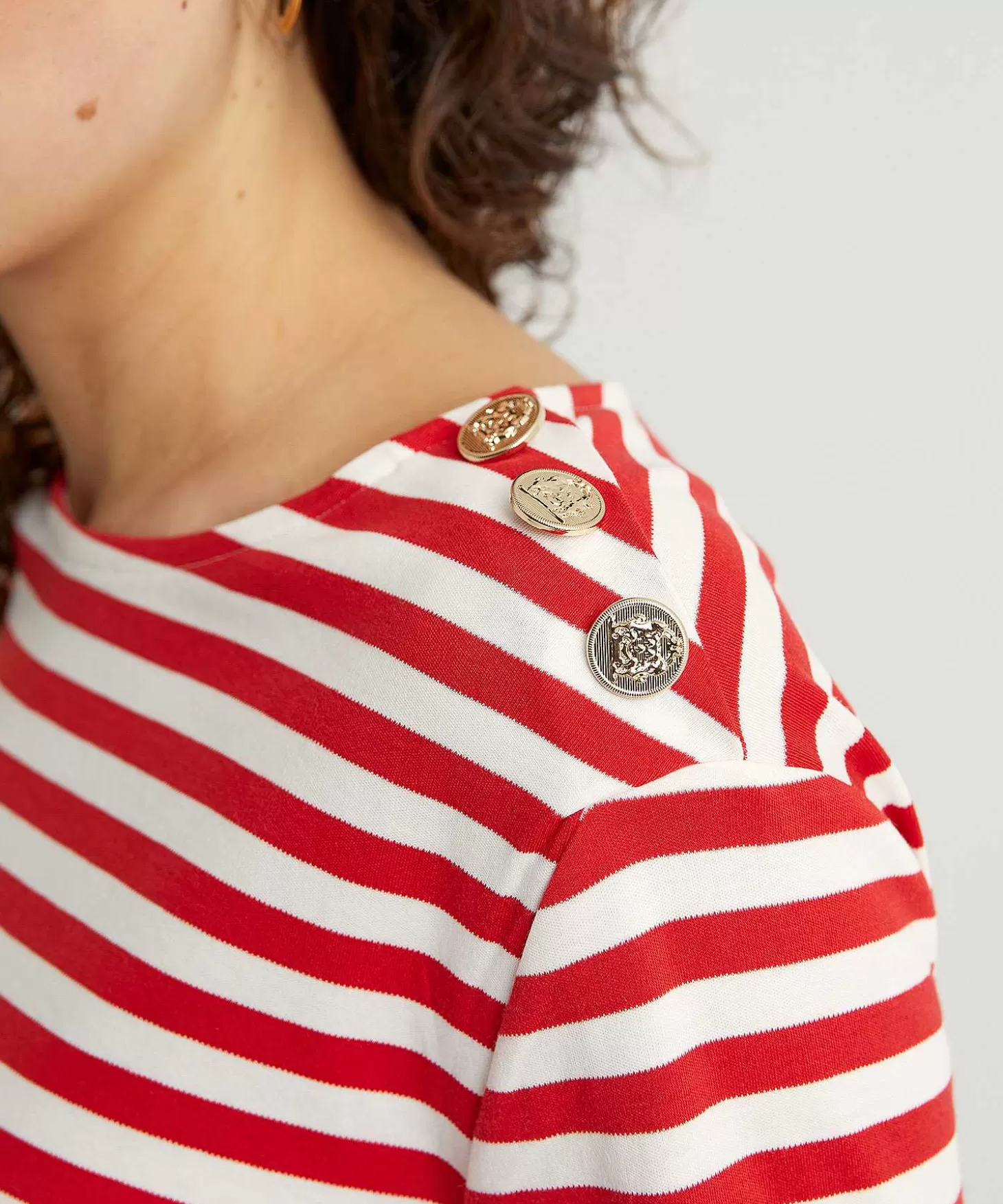 In Maritieme Rood/Witte Streep Wordt Dit Gestreepte Oui Shirt Met Sierknopen Jouw Favoriet. Zie Je Haar Boothals, 3/4E …