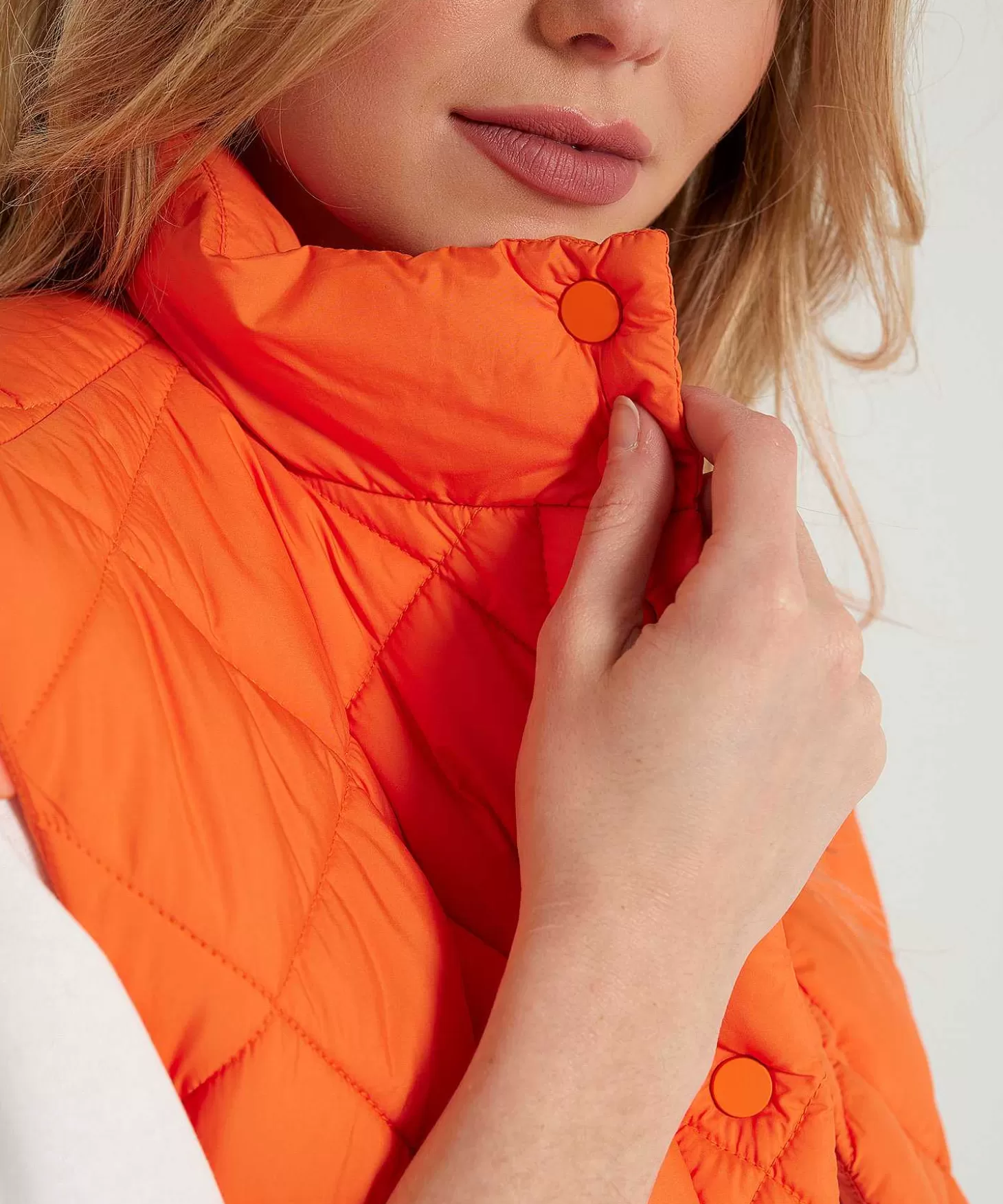 Zeg Oui Tegen Deze Korte Bodywarmer Van Oui. Wat Een Pittig Mandarin (Oranje) Kleurtje En Wat Een Sportief Kort Model M…