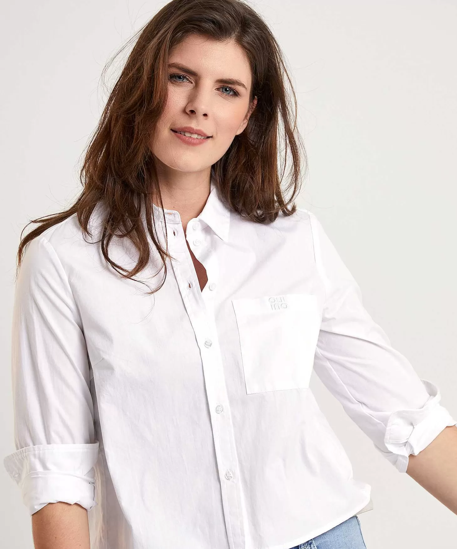 In Fijne Poplin Kwaliteit Is Deze Korte Oui Blouse Enig In Zijn Soort. Naast Een Klassieke Puntkraag En Knoopsluiting Heeft Ze Coupenaden, Een Borstzakje Met Logo-Borduursel En Een Sportieve Cropped Lengte. Je Draagt Haar Met Een High-Waist Jeans Of Broek + Sneakers Of Loafers En Wat Dacht Je Van De Combinatie Met Een Denim- Of Printrok En Laarsjes? In Stralend Witte Katoen Is Dit Zo’N Blouse Waar Je Nooit Op Uitgekeken Raakt. Samenstelling: 100% Katoen.