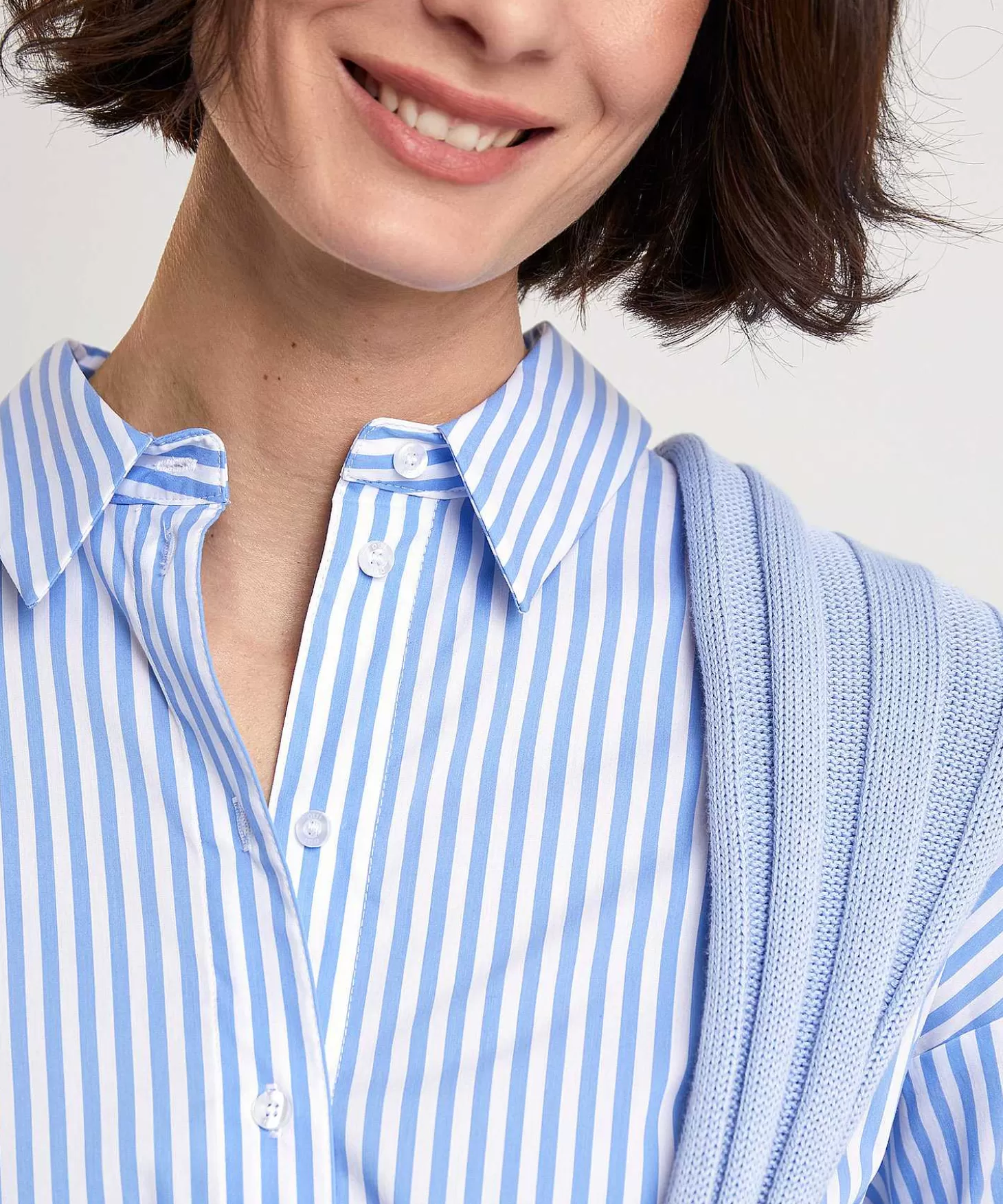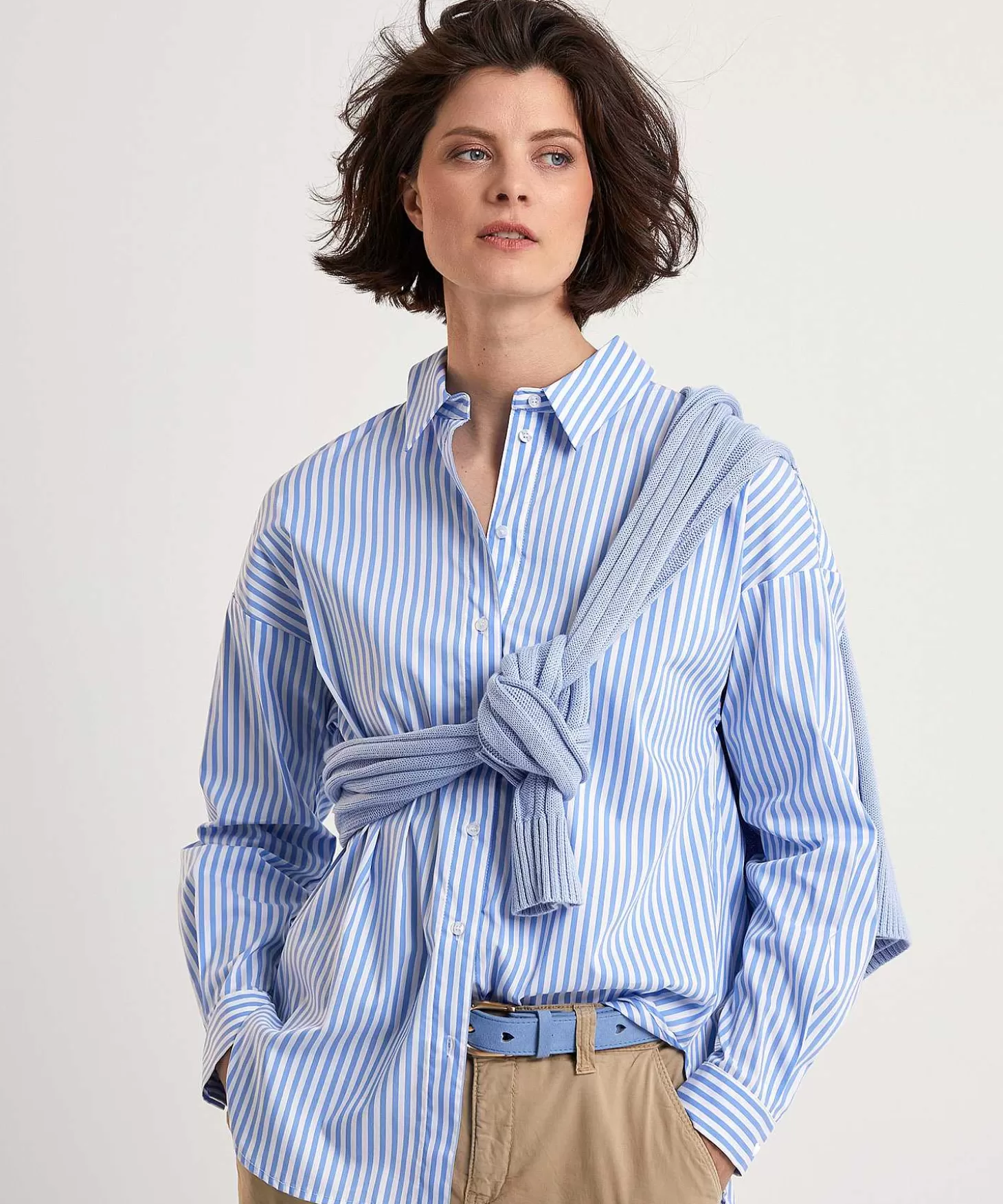 In Langer Model Is Deze Oui Blouse In Klassieke Streep Een Ware Musthave. Tijdloos Met Haar Rood/Witte Of Blauw/Witte Streepje, Puntkraagje En Ronde Zoom (Achter Langer) Past Ze Perfect In Jouw Garderobe. De Laag Ingezette Mouw (Oversized Shoulder) Geeft Haar Nét Die Relaxte Look Die Je Wenst En Je Draagt Haar Stijlvol En Sportief Het Jaar Rond. Combineer Haar Met Een Blazer En Pantalon + Loafers Naar Kantoor Of Met Een Jeans En High Heels Naar Een Party. En Wat Dacht Je Van Gematcht Met Een Wide Leg Broek En Sneakers? Samenstelling: 78% Katoen, 20% Polyamide, 2% Elastan.