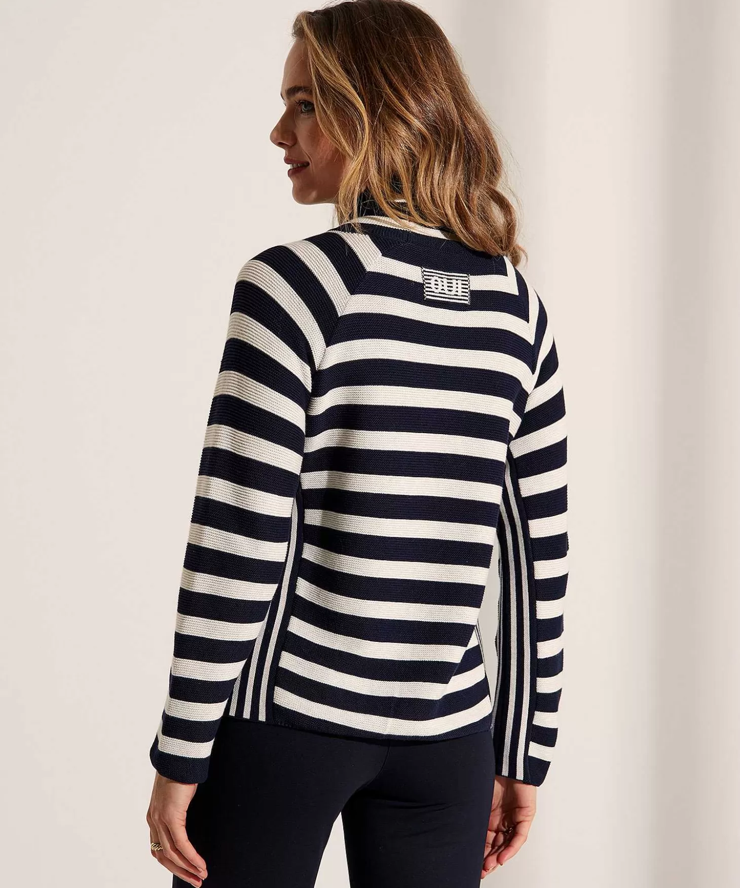 Kraak Jij De Streepjescode Van Deze Sublieme Oui Trui In Fijne Ribknit Strepen? In Nachtblauwe Met Ecru Kleurige Katoen Draagt Ze Net Zo Aangenaam Als Ze Uniek Oogt. Zie Je Haar Soepele Rolcol, Raglanmouw En Verticale Siernaad Middenvoor? Daarnaast Heeft Ze Ingenieus Ingebreide Zijpandjes Die Uitlopen In Een Subtiele A-Lijn (En In De Mouw) Met Smalle Contraststrepen. Achter Heeft Ze Een Gebreid Oui Logo En Ze Is Dus Van Alle Kanten Een Plaatje. Je Draagt Haar Met Een Jeans En Loafers Voor Een Maritiem Stijltje. En Wat Dacht Je Van Samen Met Een Pantalon En Laarsjes Naar Je Werk Of Een Feestje? Oui Zeggen Was Zelden Zo Origineel. Samenstelling: 100% Katoen.