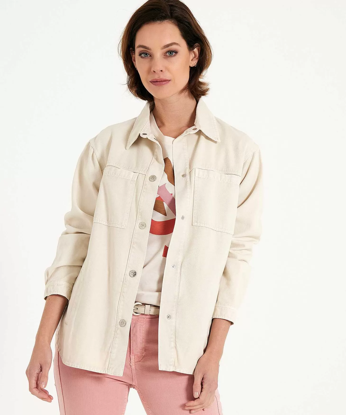 Volledig In Cargostijl (De Trend!) Past Deze Oui Shacket In Iedere Fashion-Garderobe. Wat Een Stoer Jasje In Blouse Model, Flink Knipogend Naar Utility Wear: Kleding Geïnspireerd Op Praktische Werkkleding. Alleen Dit Jasje In Neutraal Kiezel Heeft Glanzende Drukknopen, Borst- En Steekzakken En Een Afgeronde Zoom Met Zijsplitten. Van Stevige Maar Zachte Katoen In Twill (Keperbinding) Valt Ze Stoer Maar Comfortabel Om Je Lijf. De Figuurnaden En Het Iets Langere Achterpand Maken Haar Helemaal Van Vandaag. Draag Haar Open (Met Opgerolde Mouwen) Een Print- Of Uni Top, Een Jeans En Boots Op Sportieve Citytrip. Maar Ook Deels Dichtgeknoopt Matcht Ze Geweldig Met Een Lange Printjurk, Rok En Laarzen Voor Een Boho Stijltje. Samenstelling: 100% Katoen.