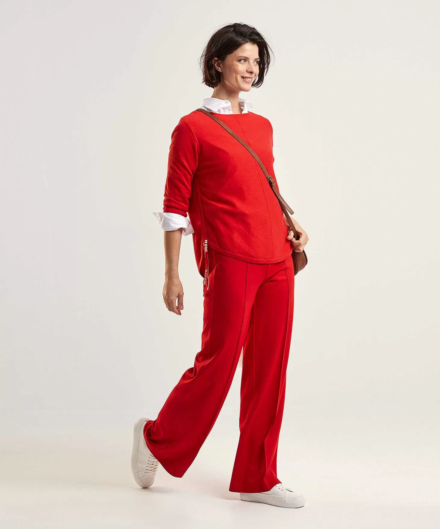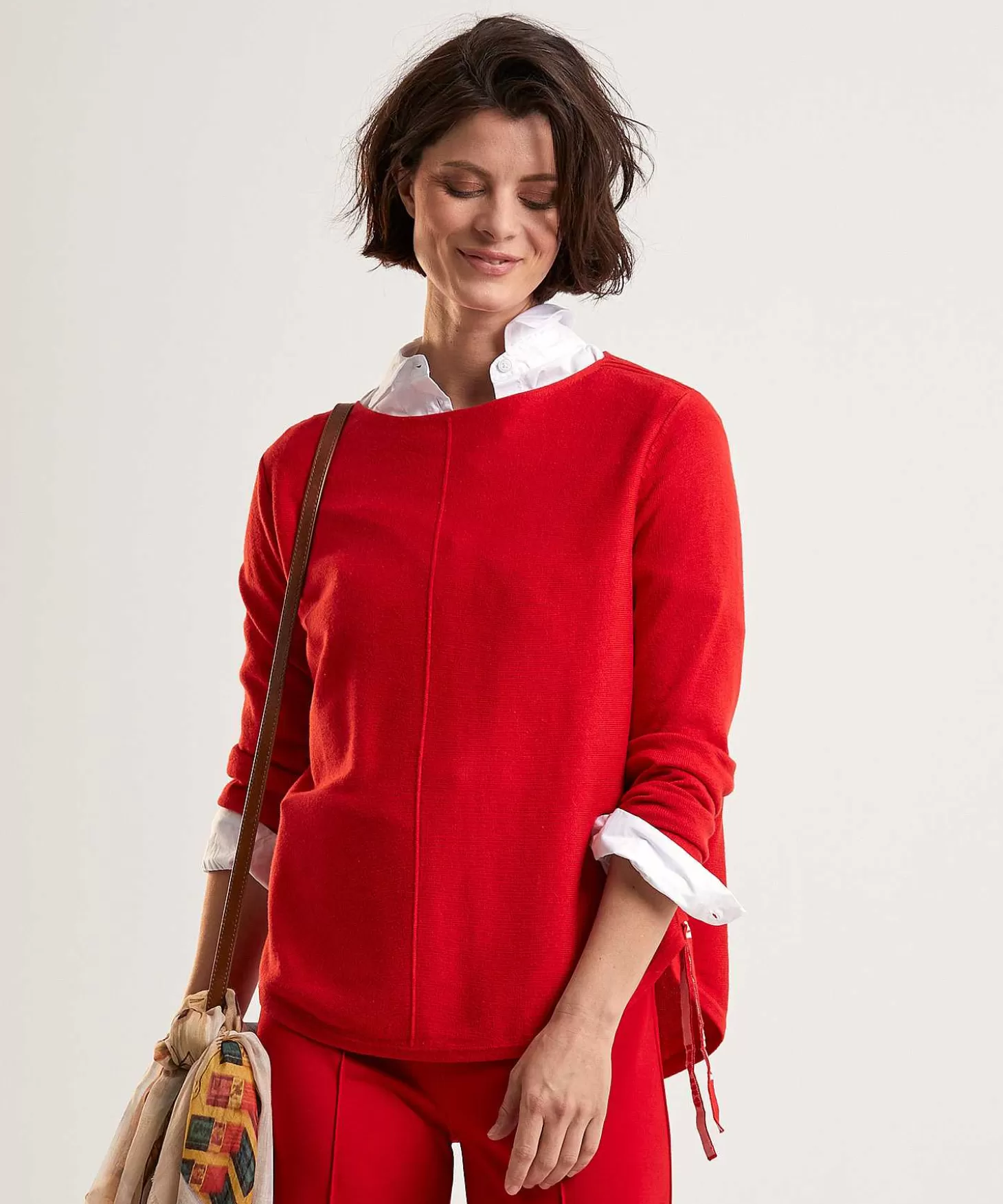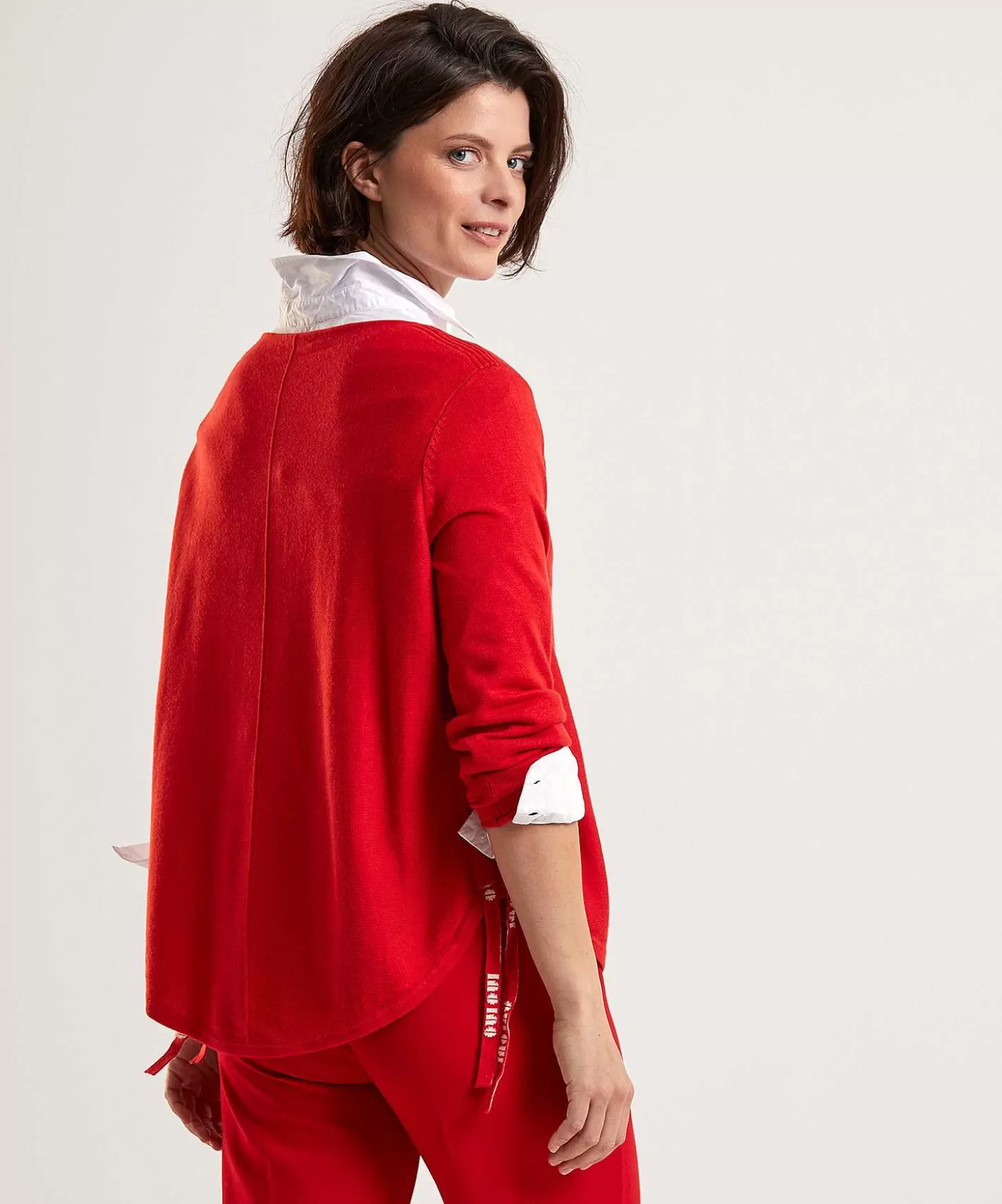 Just Tighten The Cord Is Met Deze Oui Trui Met Aansnoerkoordjes Easy Peasy. Zie Je Haar Verstelbare Logokoord In De Zijnaad, De Wijde Hals, Het Sierbreisel Bij De Schouder En De Ronde Zoom In Vurig Rood? Je Draagt Deze Dun Gebreide Trui In Viscose/Katoenmix Met Een Jeans, Pantalon Of Printbroek Met Laarsjes, Sneakers Of Loafers. De Decoratieve Verticale Rib Middenvoor En Achter Geeft Dit Model Nóg Wat Extra’S. We Love Oui! Samenstelling: 50% Viscose, 40% Katoen, 10% Zijde.