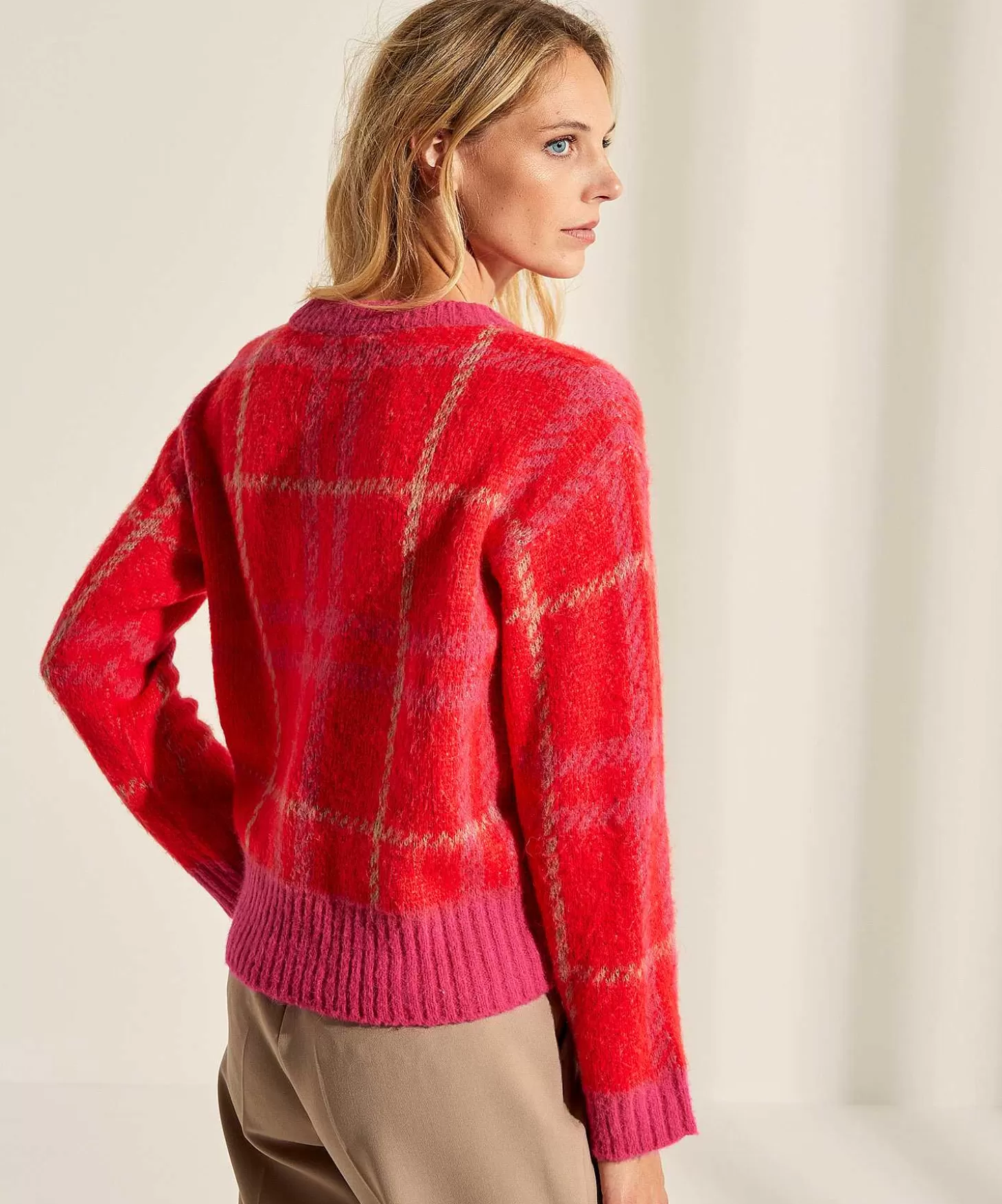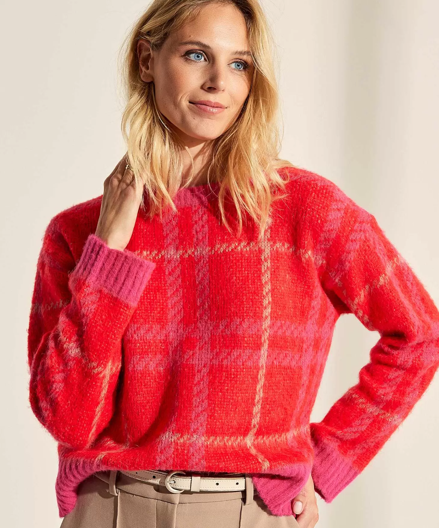 Een Super Zachte Mix Van Zachte Alpaca In Combinatie Met Andere Vezels. Dat Maakt Deze Trui Uit De Collectie Van Oui Tot Één Van Je Favoriete Items Dit Najaar. Heerlijk Warm En In Een Rechtvallend Model Met Ronde Hals, Brede Boord En Verlaagde Schouders, Valt Deze Trui Tot Op Je Heup. Haar Verrassende En Verfrissende Kleurenpalet In Warm Rood Met Fuchsia Roze En Een Zweempje Camel-Zand Geeft Je De Mogelijkheid Om Veelzijdig Te Combineren. Durf Kleur Te Bekennen Door Te Combineren Met Een Broek Of Rok In Deze Warme Tinten. Houd Het Rustig Door Te Combineren Met De Natureltint Zand. En Vanzelfsprekend Is De Combinatie Met Je Favoriete Jeans Ook Altijd Een Goed Idee. De Uitvergrote Ruit Die Je Als Patroon Ziet In De Trui, Is Helemaal Van Nu! Samenstelling: 45% Polyacryl, 35% Polyamide, 20% Alpaca.