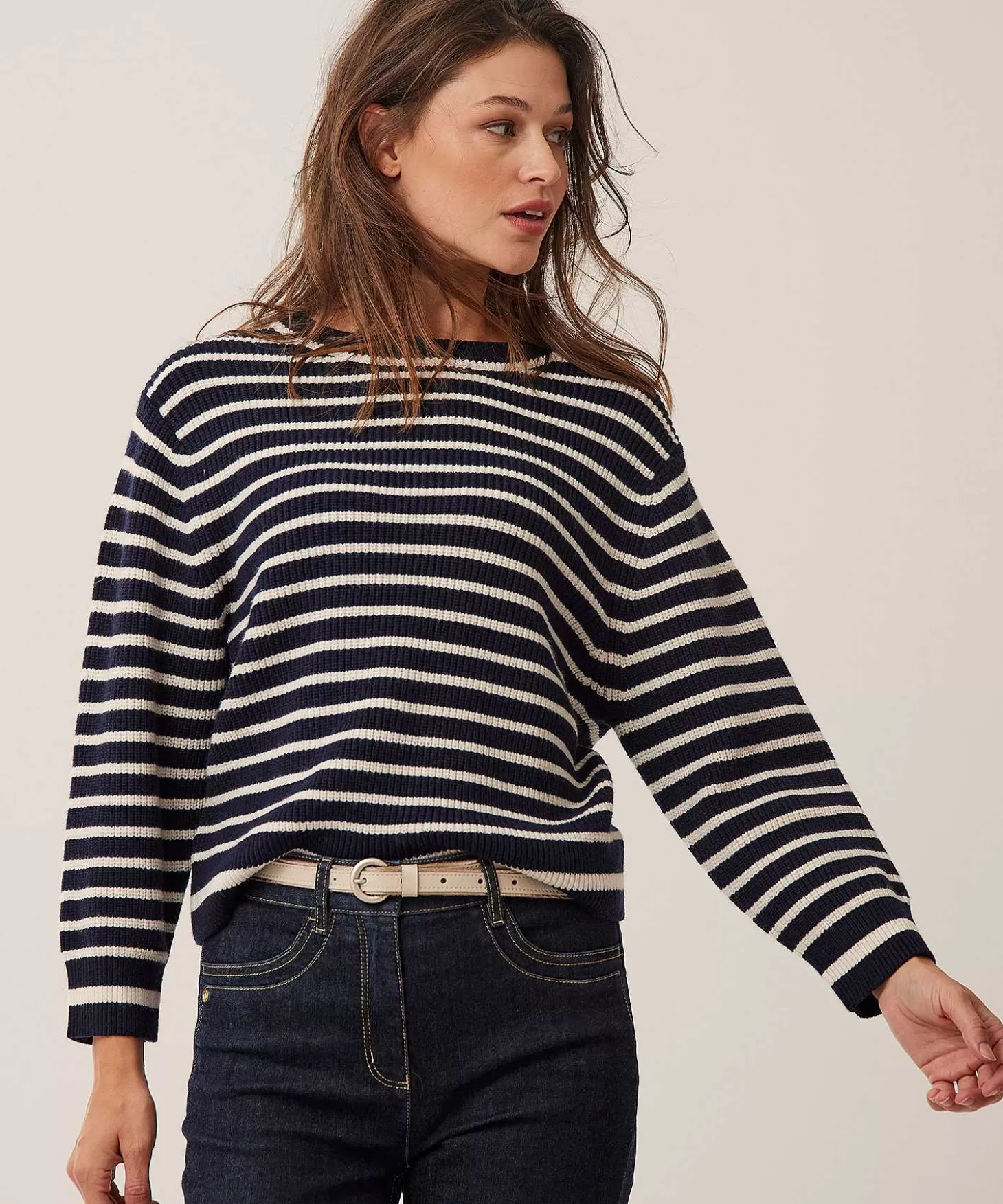 De Bretonse Streep Is Niet Uit Het Modebeeld Weg Te Denken. Meestal Zien We Haar Verschijnen Als Het Voorjaar/Zomer Wordt, Maar Ook De Variant Voor Het Najaar/Winter Is Nu Volop Van De Partij. In De Trui Van Oui Zien We Een Uitvergrote Versie Van De Bretonse Streep, Uitgevoerd In Een Stevig En Warm Ribbreisel In De Kleuren Donkerblauw Met Offwhite. Deze Recht Vallende Trui Heeft Een Ronde Hals En Boordjes. Combineer De Trui Op Wat Je Maar Wilt. Niet Voor Niets Is De Bretonse Streep Zo Tijdloos Favoriet. Je Combineert Haar Met Gemak Op Een Print, Bijvoorbeeld Een Gebloemde Broek Of Rok, Maar Evengoed Staat Ze Geweldig Op Natureltinten En Wat Dacht Je Van Warm Bruin. Samenstelling: 50% Viscose, 28% Polyester, 22% Polyamide.