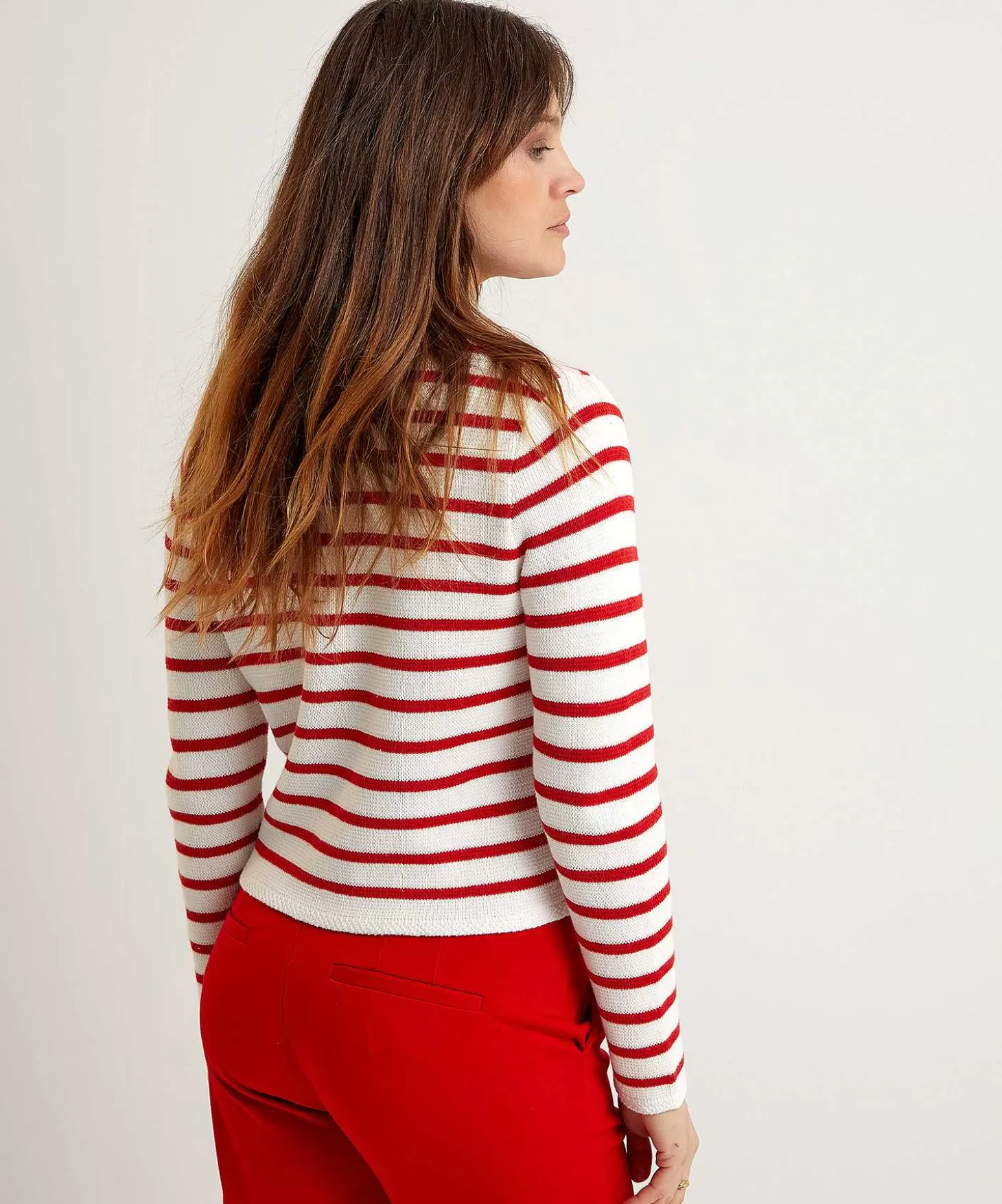 We Love Stripes En Dit Oui Vest Is Er Vol Van. Wat Een Klassiek Model Met Haar Ronde Hals, Bretonse Streepje En Metalen…