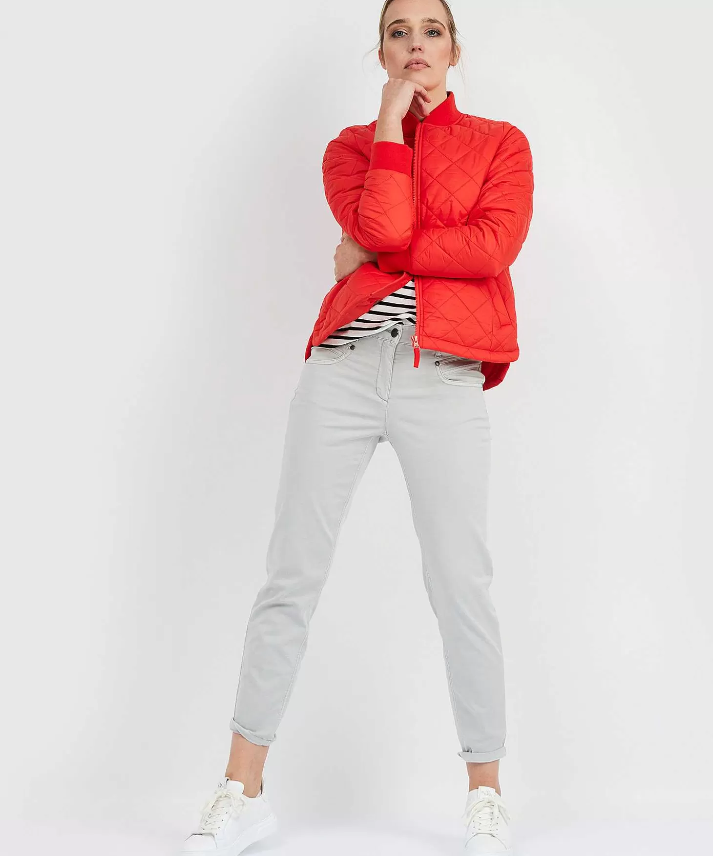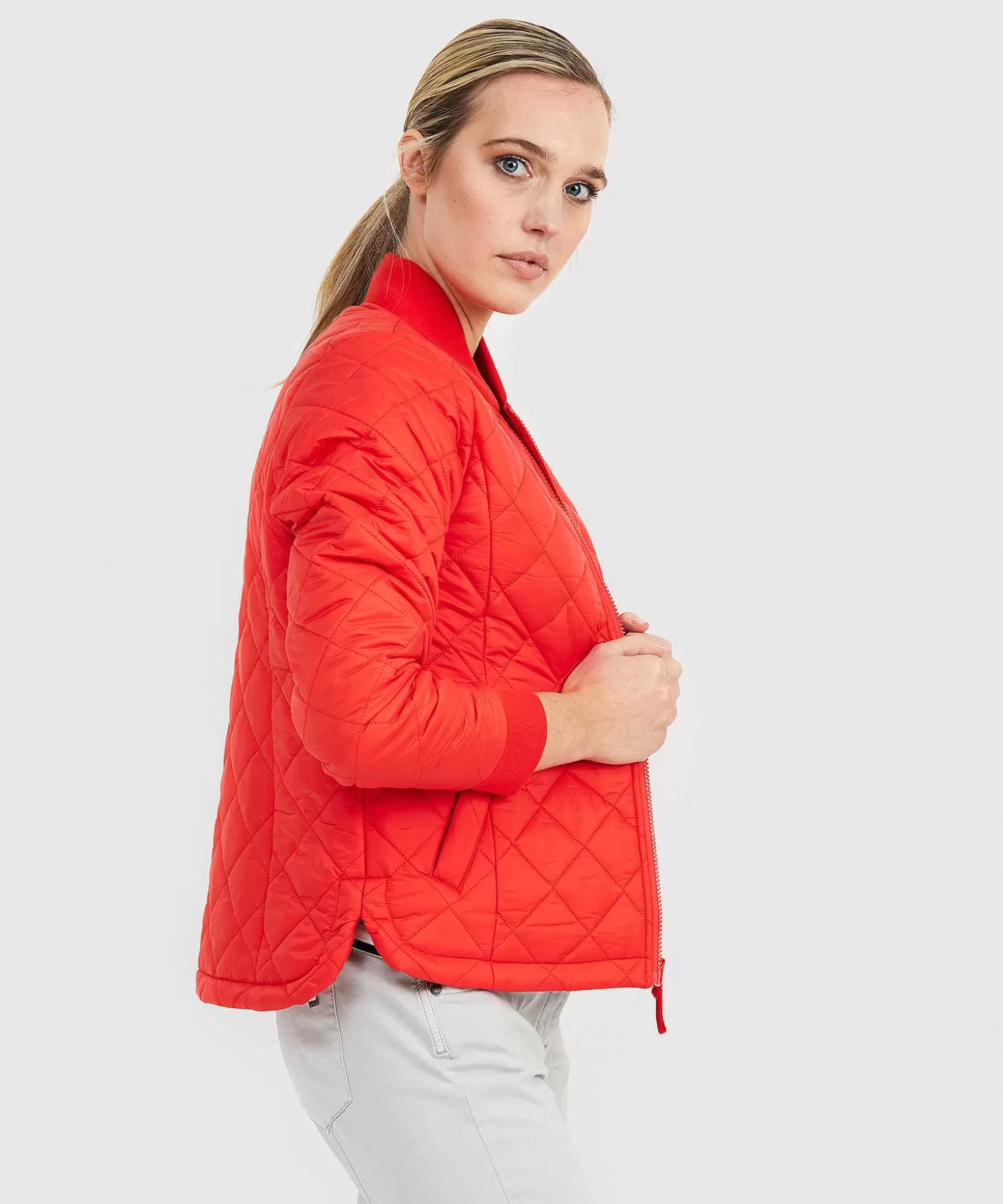 Dit Klassieke Bomberjack – Doorgestikt En Lichtgewicht – Wordt Jouw Nieuwe Favoriete Tussenjas. No Doubt About That! Verkrijgbaar In Verstild Olijf (Vergrijsd Groen) En Sprankelend Rood. Welke Kleur Kies Jij? Deze Jas Heeft Zachte Ribboorden, Praktische Steekzakjes En Een Zijsplitje, En Kijk Eens Naar De Afgeronde Zoom (Achter Langer Dan Voor). Niet Alleen Voor Paardenmeisjes Deze Comfortabele Beauty. Dit Bomberjack Heeft Een Recht Model En Valt Op De Heup. Dankzij Geraffineerde Figuurnaden Valt Ze Toch Vrouwelijk Om Je Lichaam. Combineer Haar Met Een Jeans En Sneakers Voor Een Casual Stijltje, Maar Ook Met Een Nette Pantalon En Pulli Misstaat Ze Niet. Deze Móet Je Hebben. Samenstelling: 100% Polyamide | Vulling: 100% Polyester | Voering: 100% Polyamide | Overig: 97% Katoen, 3% Elastan.