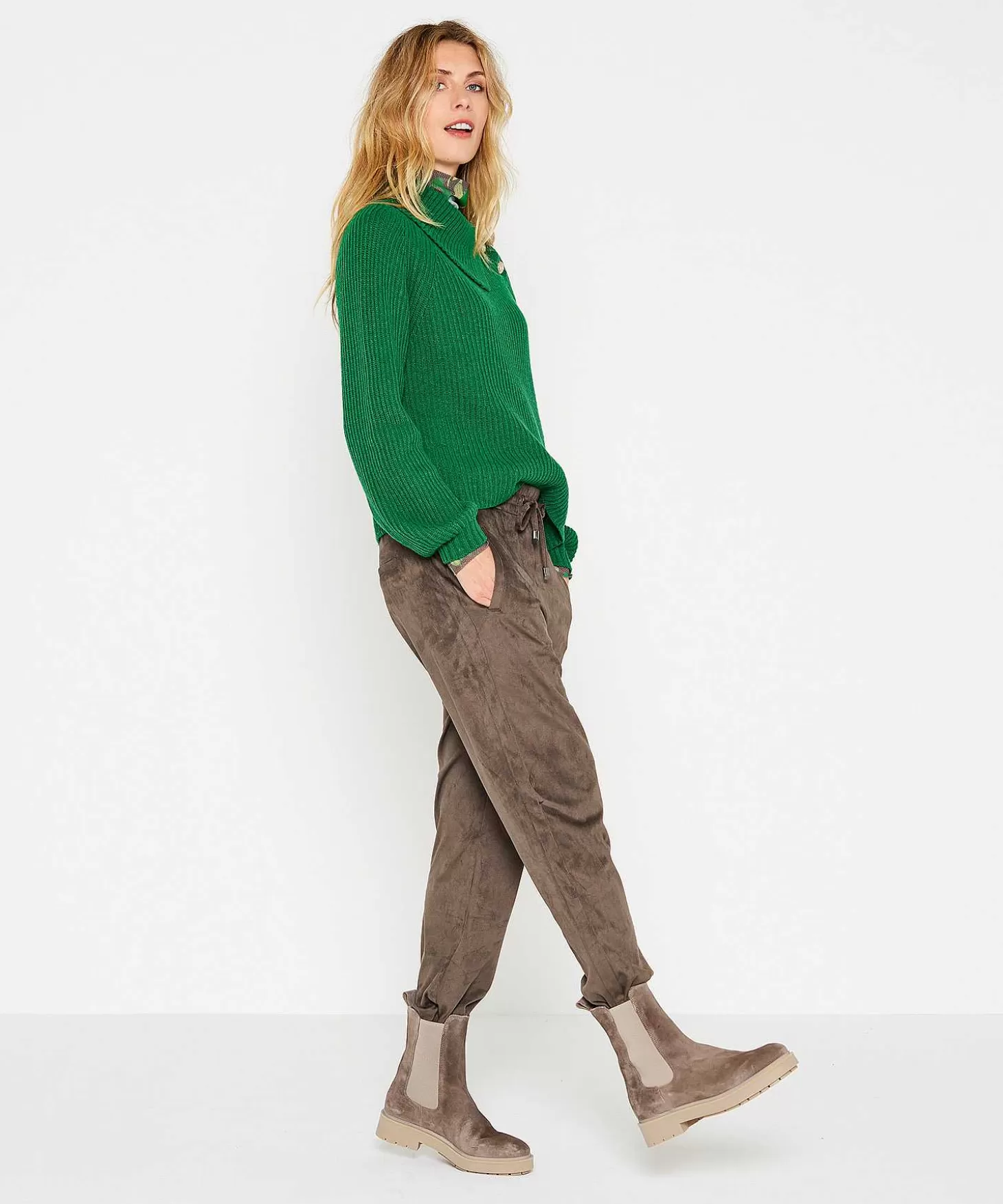 Raffaello Rossi Creëert Met Deze Jogger Streelzachte Luxe Met Een Sportieve Pasvorm. Sportief Als In Een Aansluitende Stretchy Tailleband En Een Heel Losse Fit. In Licht Taupe Of Kaki Suèdine (Vegan Suède) Met Steekzakjes, Een Elastische Tailleband Met Strikkoord En Fake Paspels Achter Past Ze In Vele Garderobes. Draag Haar Met Wollige Knitwear, Een Blouse + Blazer En Boots, Sneakers Of Instappers Op Kantoor, Citytrip Of Boswandeling. Amal Is Zo’N Allrounder Waar Je Seizoenen- En Jarenlang Plezier Van Gaat Beleven. Samenstelling: 90% Polyester, 10% Elastan.