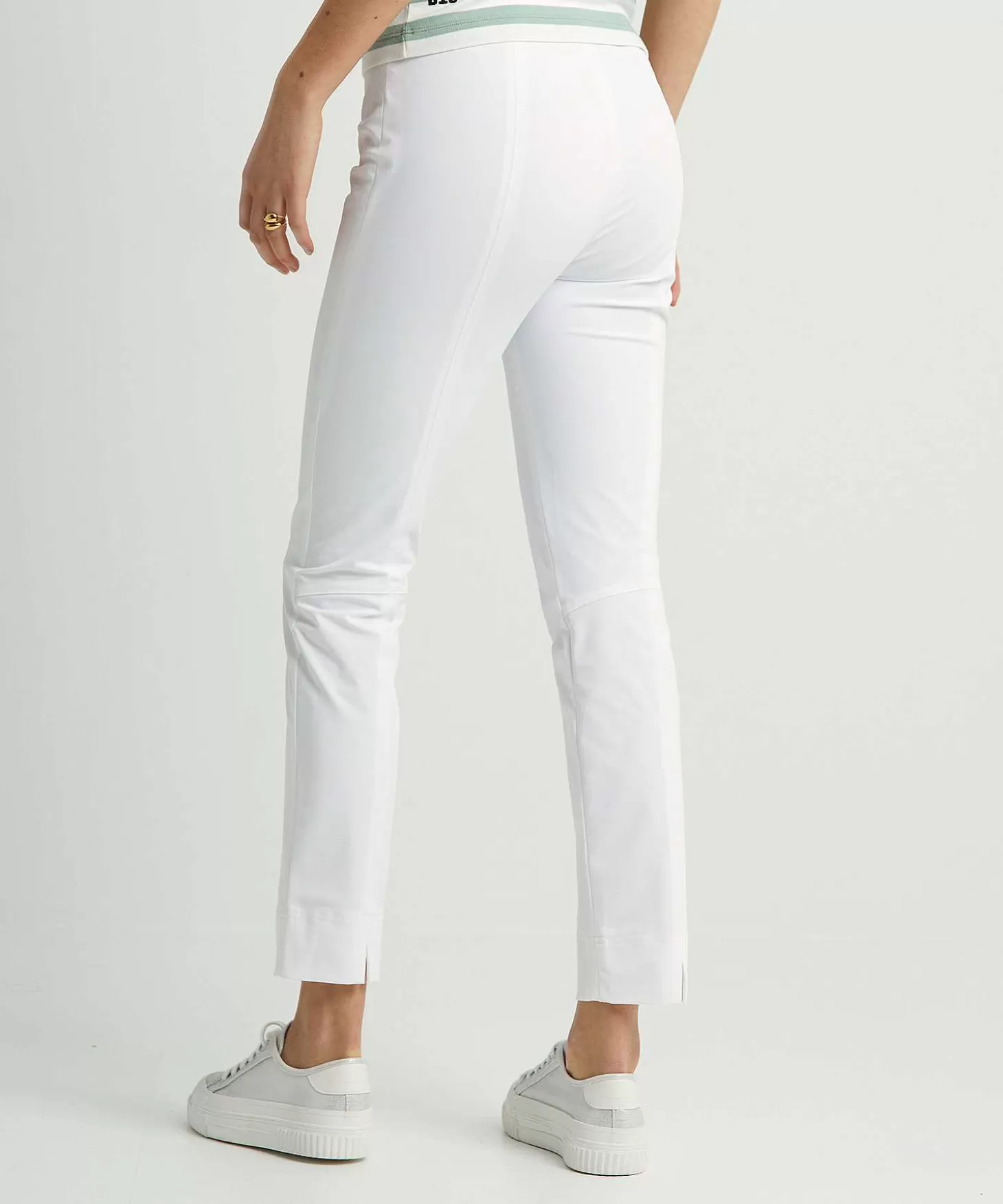 Met Tregging Penny Uit De Collectie Van Raffaello Rossi En Uitgevoerd In Smetteloos Zomers Wit Of Donker Zand Geef Je Je Outfit De Elegantie Van Een Aangesloten Look Met Kleine Subtiele Details. De Broek Is Voorzien Van Een Elastische Tailleband En Figuurnaadjes Aan De Voorzijde En Achterzijde Die Zorgen Voor Een Aangesloten Fit. De Enkellange Broek Heeft Een Pijp Die Aan De Achterzijde Een Klein Splitje Heeft. Combineer De Broek Met Een Wijdvallende Top Of Een Ruime Trui Of Kies Juist Voor Een Aangesloten Top Met Daarbij Een Jasje. Gemaakt Van Zalig Zachte Travelstof, Met Fijne Stretch. Sneakers Sandaaltjes Of Hakken, Deze Broek Laat Ze In Het Oog Springen! Samenstelling: 47% Polyamide, 46% Katoen, 7% Elastan.