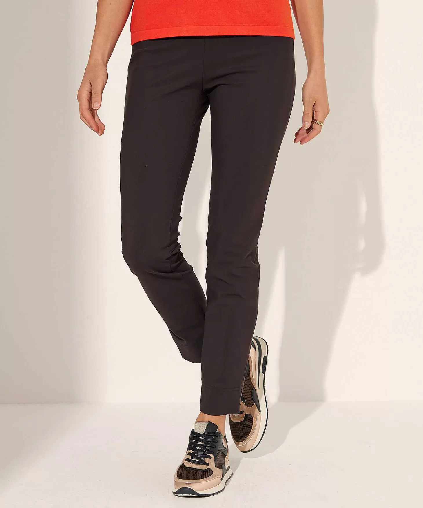 Met De Tregging Van Raffaello Rossi Ben Je Right On Track. Duurzaam, Eenvoudig In Onderhoud, Ademend En Kreukvrij Heeft Deze Zwarte, Nachtblauwe Of Donkerbruine Aansluitende Broek Uitmuntend Sportieve Kwaliteiten. Met Haar Slanke Lijntje, Figuurnaden En Lengte Tot Boven De Enkel Draag Je Haar Overal Bij En Naar Toe. Op Businesstrip Draag Je Haar Met Een Uni Top In Een Trendkleur, Een Blazer En Laarsjes, Maar Ook Met Een Bretonse Streeptrui En Loafers Ga Je Preppy Naar Kantoor Of Een Feestje. En Wat Dacht Je Van De Match Met Een Sweater Of Wollig Lang Vest En Sneakers Tijdens Het Shoppen. Met Penny Maak Je Altijd Stijlvolle Meters Met Het Grootste Gemak. Samenstelling: 73% Polyamide, 27% Elastan.