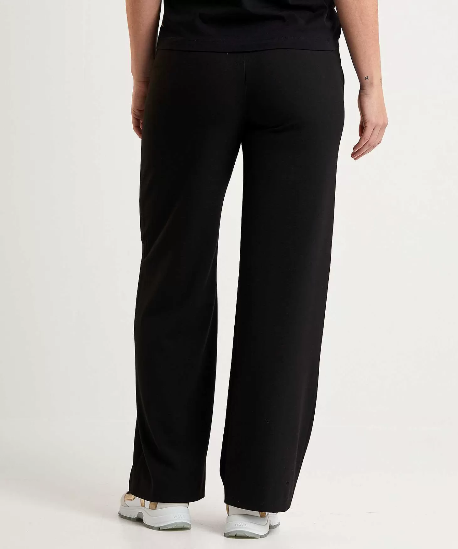 De Raffaello Rossi Wide Leg Broek Palina Long Is Van Vele Modemarkten Thuis. Flirtend Met Een Chique Pantalon Maar Met Het Draagcomfort Van Een Sweatpants Wordt Dit Jouw Lievelingsbroek. Zie Je Haar Elastische Tailleband, Steekzakjes, Wijde Pijp En (Fake) Paspelzakjes Achter En Voel Je Haar Structuurstof? Verkrijgbaar In Offwhite, Biscuit, Zwart En Marine Is Er Altijd Een Broek Naar Jouw Garderobe. Je Draagt Dit Model Met Een Blouse, Blazer En High Heels Of Loafers Naar Je Werk Of Een Feestje. En Wat Dacht Je Van Samen Met Een Streep- Of Meshshirt Of Fijne Knitwear + Laarsjes Op Citytrip? Samenstelling: 68% Polyester, 30% Viscose, 2% Elastan.