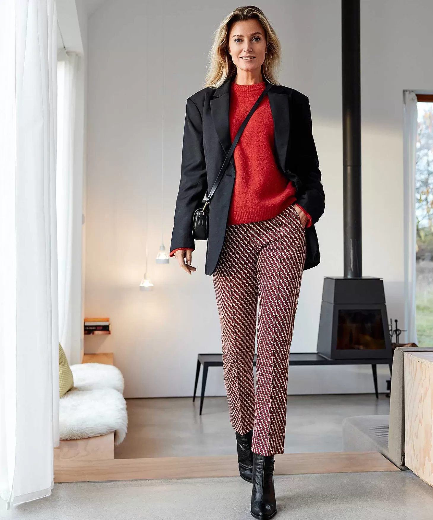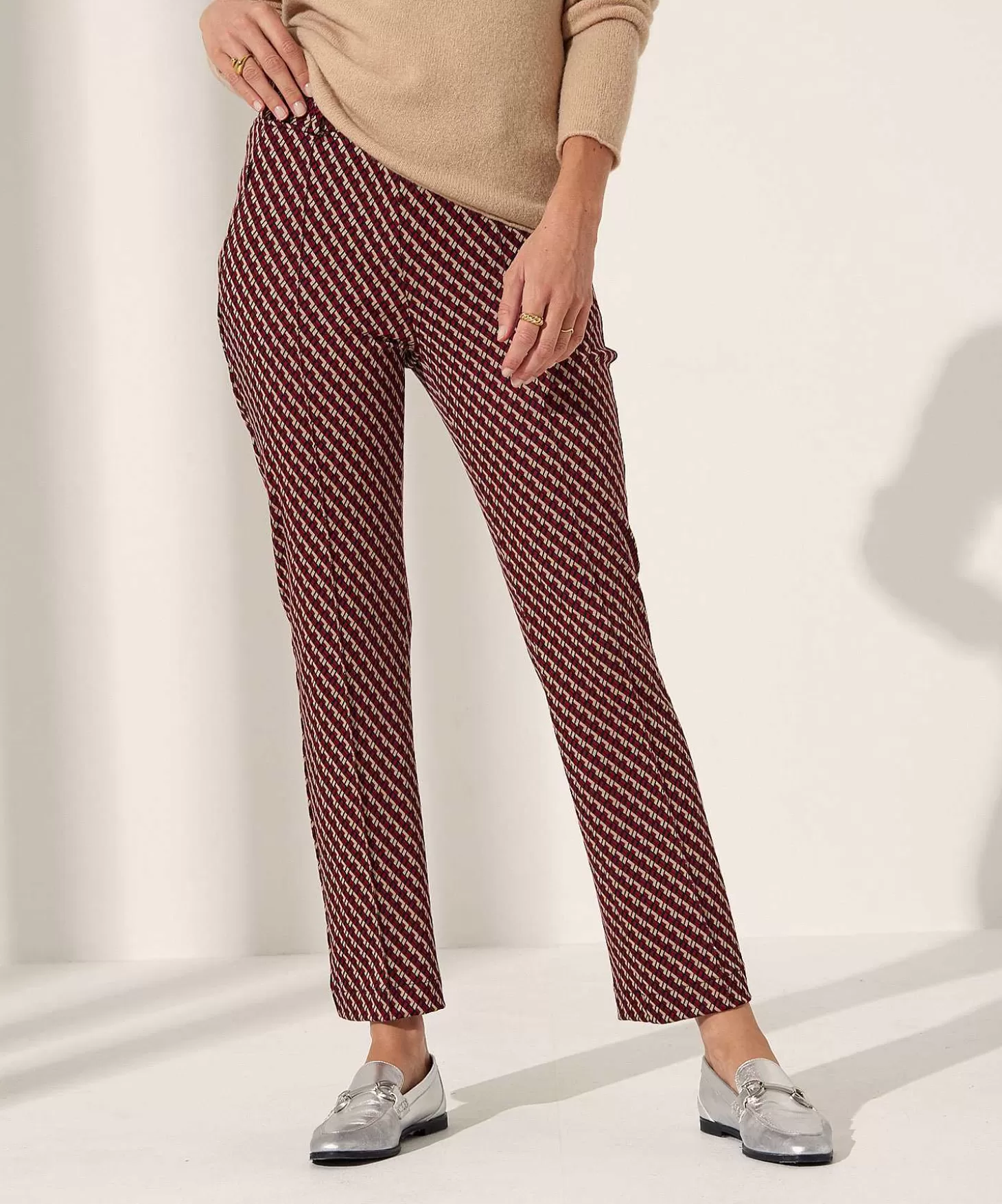 Raphaela By Brax Komt Dit Najaar Met Een Comfortabele Kick Flare Broek, Met Een Hoog Draagcomfort In Een Superslim Fit! Broek Lillyth Is Een Echt Basisstuk In Je Garderobe. De Verkorte 7/8 Sweatpants Is Gemaakt Van Een Fijne Jersey En Uitgevoerd In Een Grafische Print In De Tinten Zand, Cranberry En Zwart. Deze Kick Flare Is Voorzien Van Sportieve Zakjes Met Ritsjes En Heeft Een Doorgestikte Vouw. De Super Slim Fit In Combinatie Met De Taillehoogte Zorgen Voor Een Slanke Fit. De Broek Heeft Een Elastische Tailleband Met Riemlusjes En Is Afgewerkt Met Fake Sluitingen. Draag Met Je Favoriete Blazer, Vest Of Kies Voor Een Crispy Blouse Of Zalig Zachte Pullover. Samenstelling: 64% Viscose, 34% Polyamide, 2% Elastan.