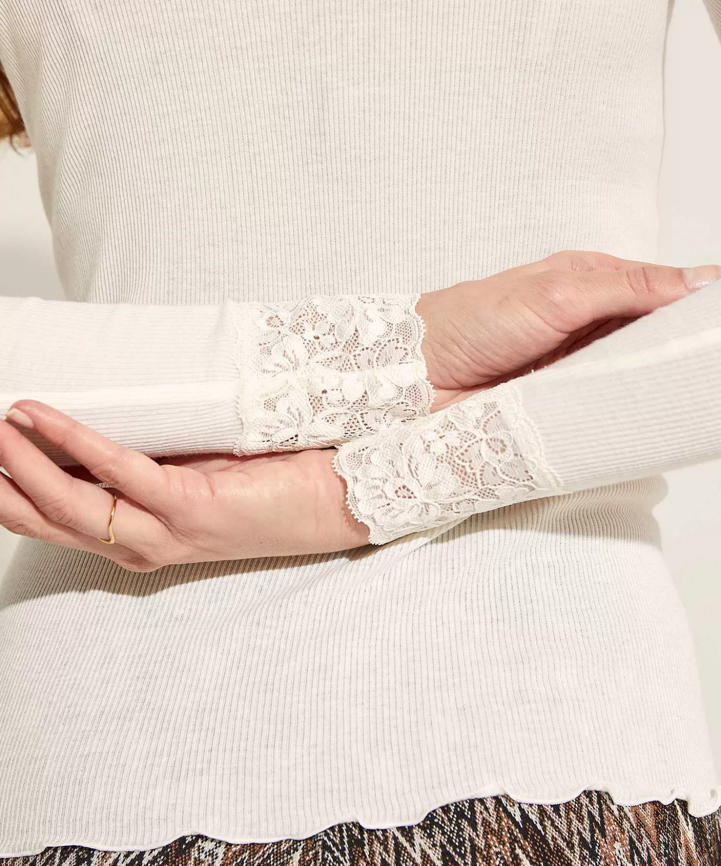 Rosemunde Top V-Hals Met Kant Rib Hot