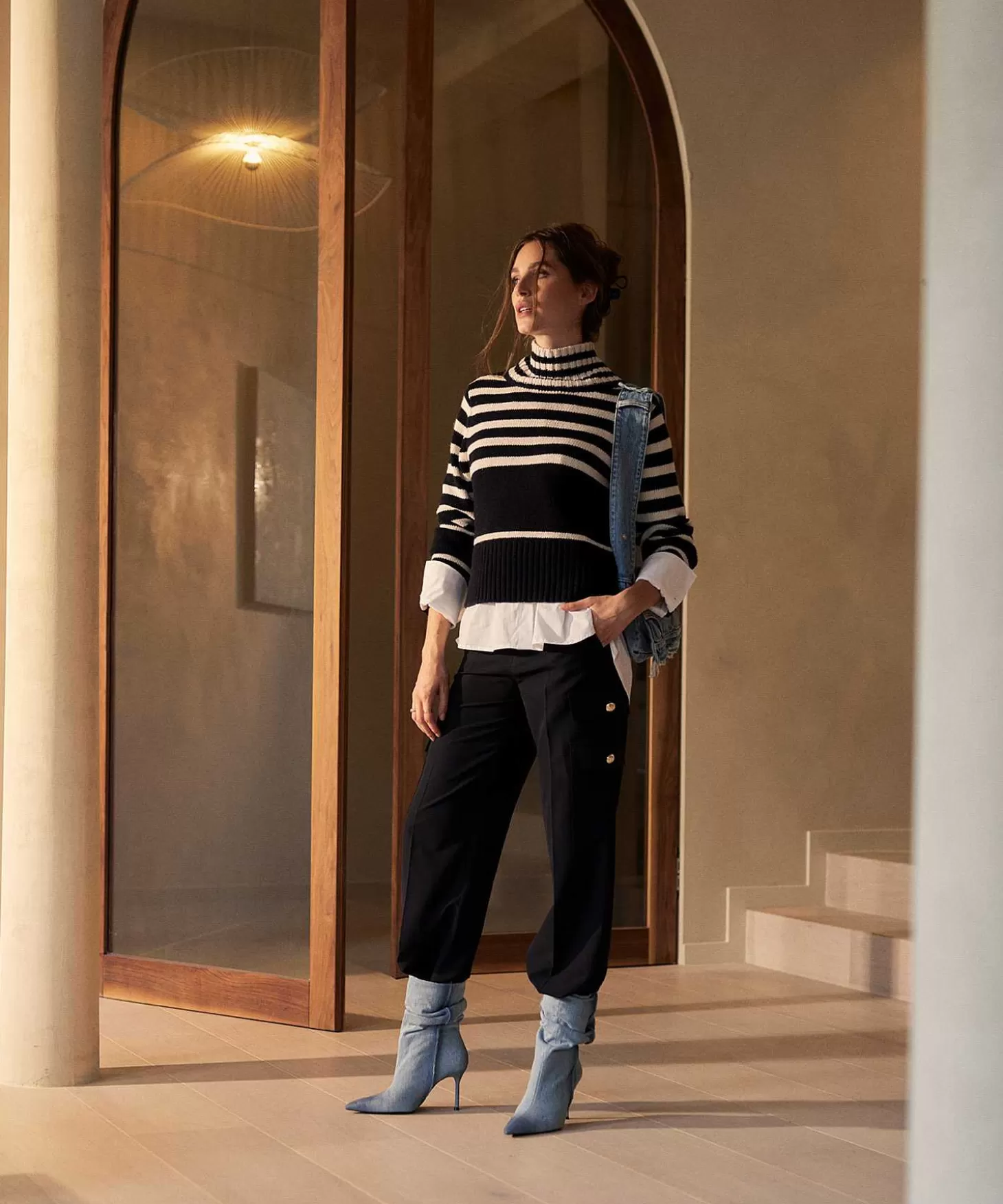 Met Broek Mara Gooit Rosner Het Met Deze Wide Leg Pantalon Over Een Maritieme Boeg. De Goudkleurige Ronde Knopen Aan De…
