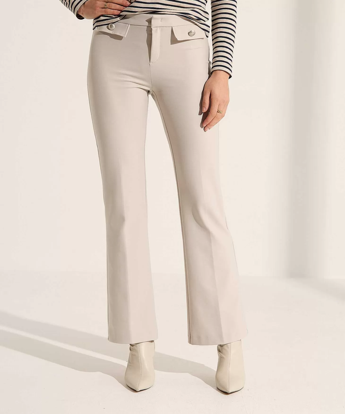 In Warme Winter (Techno) Kwaliteit Is Deze Rosner Broek Een Aanwinst Op Jouw Garderobe. Zie Je Haar Subtiele Flared Pijp, Allround Kleuren Zwart, Biscuit Of Marine En Minimalistische Lijntje? Met Haar Fake Klepzakken, Minimalistische Sluiting En Fake Paspels Achter Oogt Ze Als Een Pantalon Maar Heeft Ze Het Comfort Van Een Sportieve Broek. Je Draagt Alisa Met Een Bretonse Streeptrui, Een Blouse + Blazer Of Wollige Knitwear. Laarsjes, Boots, Sneakers Of High Heels Eronder En Je Bent Altijd Fashionable Onderweg. Mid Waist. Samenstelling: 90% Polyamide, 10% Elastan.