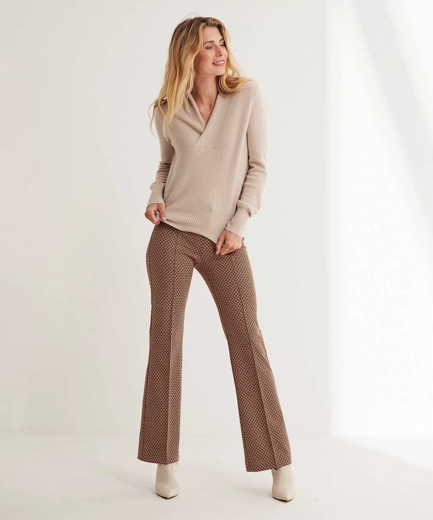 Meet The 70’S Met Deze Rosner Broek In Flared Model. Zie Je Haar Grafische Blokdessin In Jacquardweefsel In Bruin, Bl…