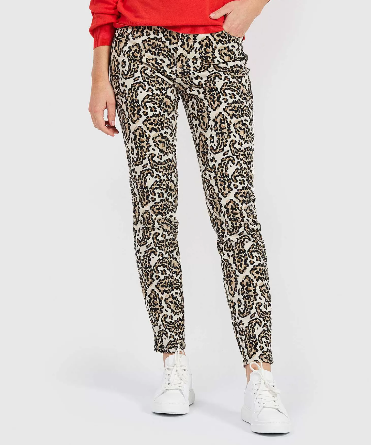 Met Deze Rosner Jeans Audrey Wandel Jij Moeiteloos De Lente In. Met Haar Animalprint In Zwart/Zand/Taupe Op Een Sandy (…