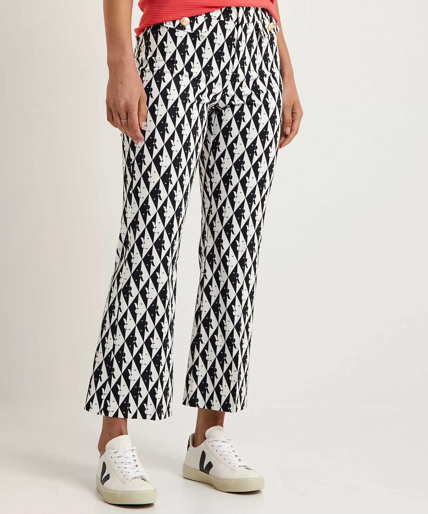 Deze Rosner Broek Combineert Een Sportieve Kick Flare Met Een Klassieke Wieber-Ruit. In Zwart/Wit Met Een Schaduwlogo Ruit Is De Print Het Eerste Wat Je Ziet. Daarnaast Heeft Ze Een Korte Uitlopende Pijp Tot Ruim Boven De Enkel, Een Eenvoudige Sluiting En Decoratieve (Fake) Klepzakken En Paspels Achter. De Persvouw Maakt Het Af En Deze Broek Is Van Dunne Crispy Katoenmix Met Fijne Stretch.