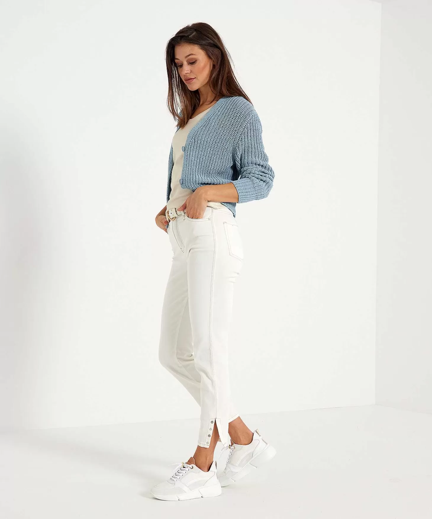 Deze Rosner Jeans In Skinny Model Met Stoere Studs Bij De Enkel Is Een Sportief Hoogstandje. Zie Je Haar Aansluitende Skinny Pasvorm, Zandkleurige Stiksel Op De Ecru Basis En Zie Je Haar Sparkling Studs Langs Het Enkelsplitje? Deze Zomerbroek Is Van Italiaanse Denim En Heeft Een Vintage Wassing En Stretcht Comfortabel. Je Draagt Haar Hoog In De Taille En Ze Matcht Geweldig Met Veel Uit Jouw Garderobe. Van Zomerse Knitwear, Een Blouse, Blazer Tot Een Streeptop Of Een Klassiek T-Shirt. Ton Sur Ton Of Gecombineerd Met Pittige Trendkleuren Kan Audrey Vele Stijlen Aan (Net Als Alle Soorten Schoentjes). Samenstelling: 92% Katoen, 6% Elastomultiester, 2% Elastan.