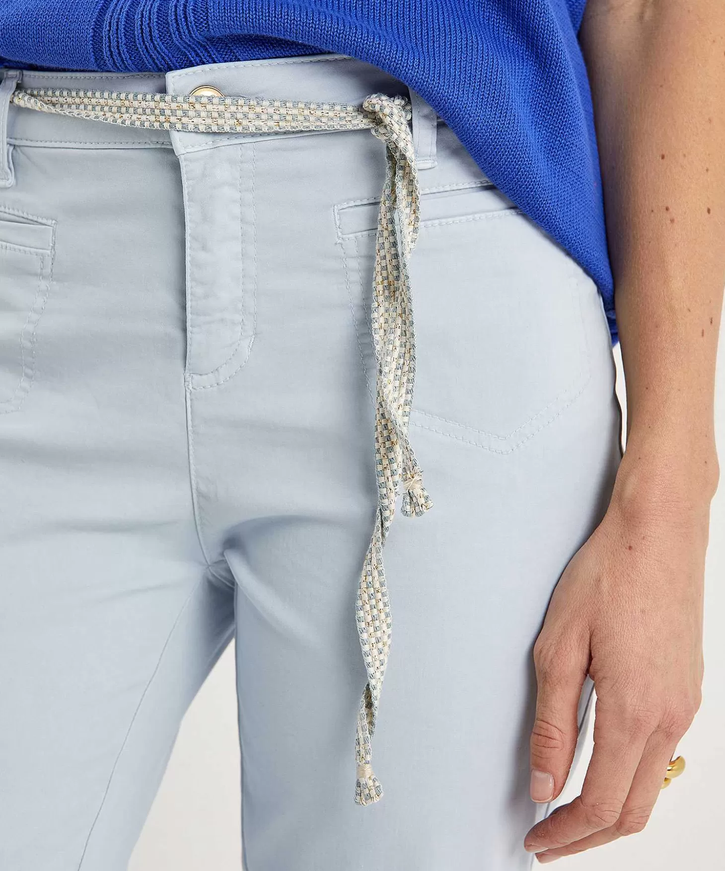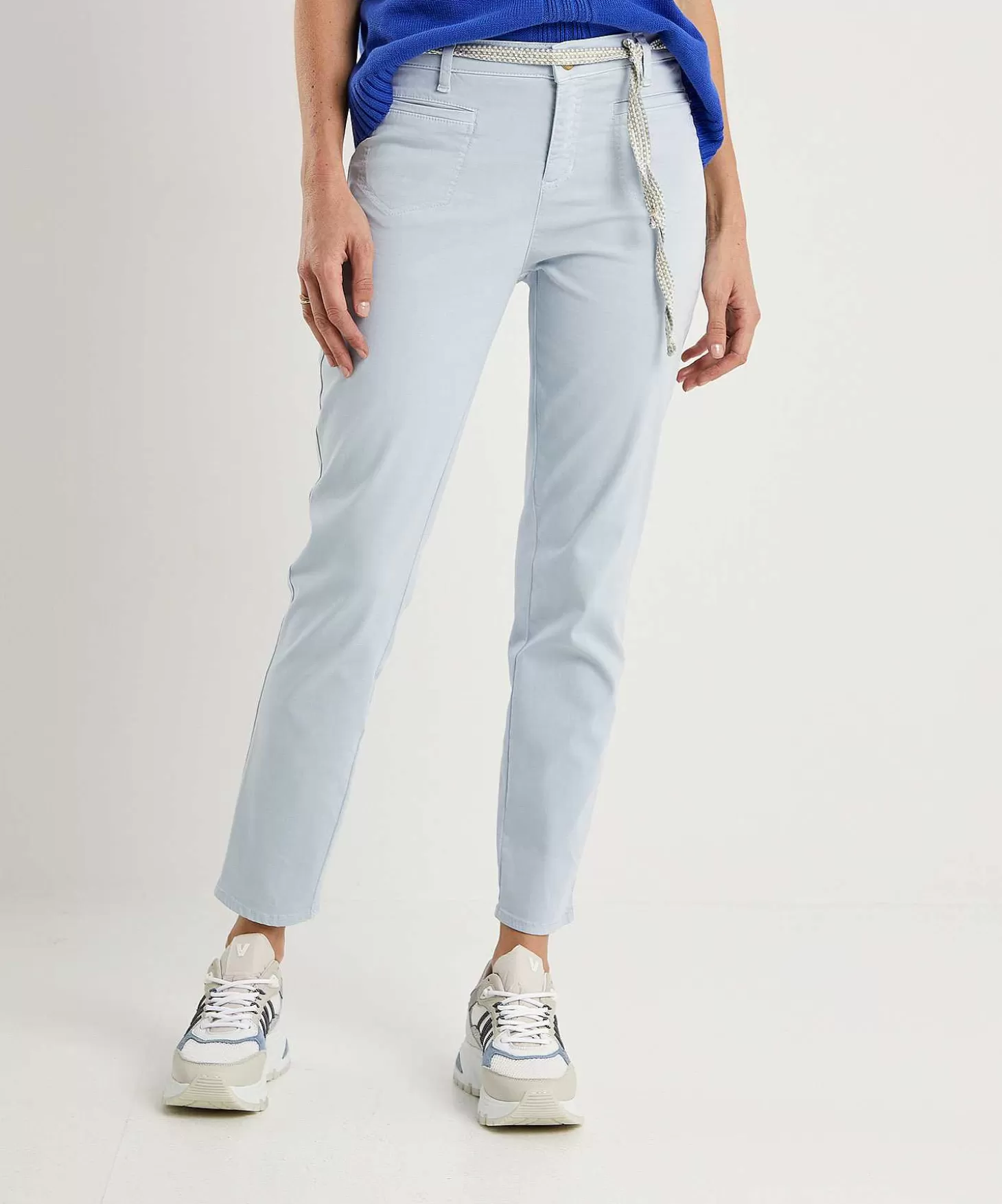 Alisa Is Een Sportieve Rosner Broek In Slim Fit Model. Zie Je Haar Gevlochten (Afneembare) Ceintuur Met Lurex En Relaxte Lichaamsvolgende Lijntje? Van Streelzachte Katoenmix Met Fijne Stretch In Baby Blue (Lichtblauw), Marine Of Offwhite Past Ze Overal Bij En Ze Reikt Tot Net Boven De Enkel.