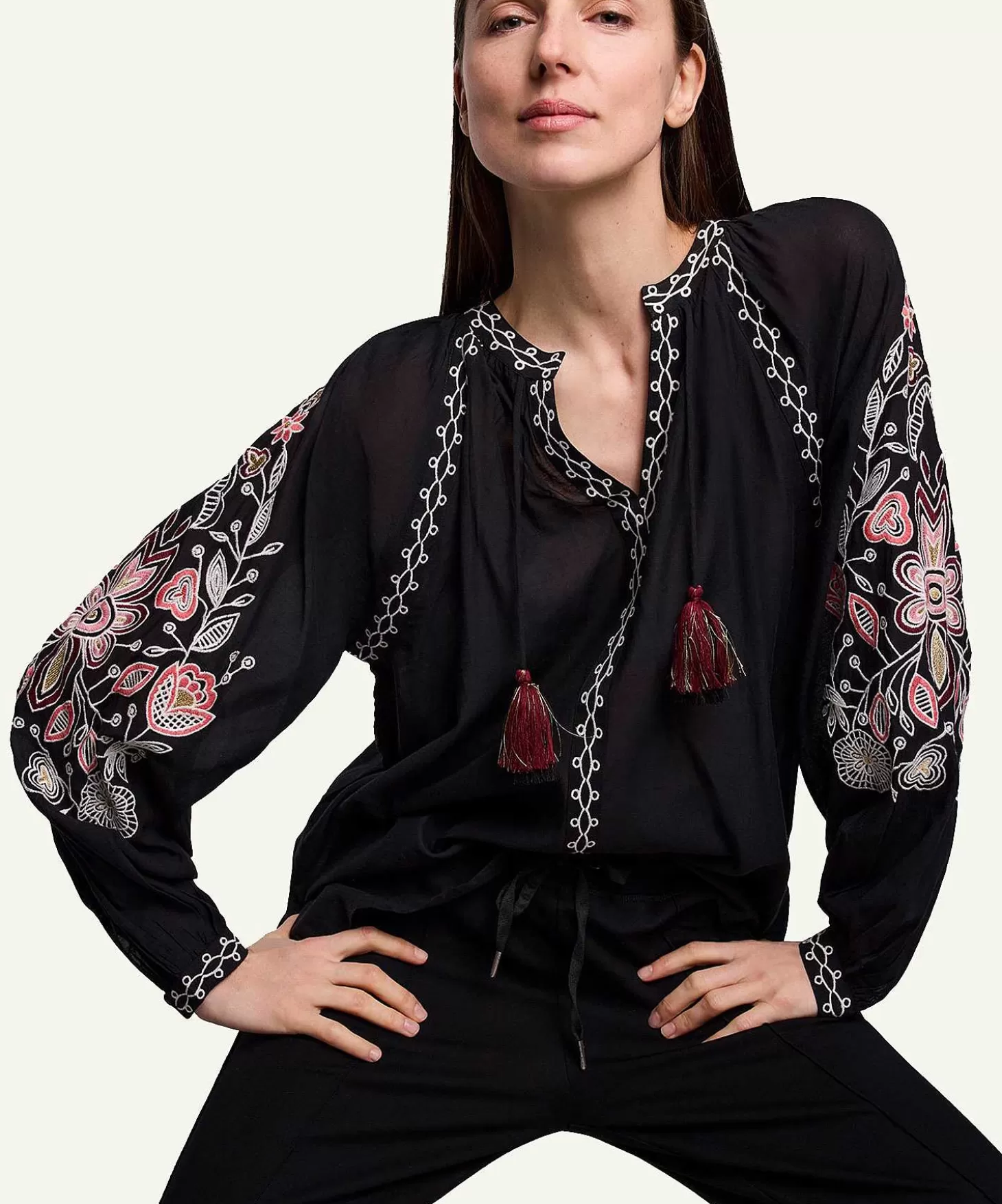 Deze Summum Blouse Met Embroidery Is Écht Het Summum. Wat Een Oogstrelend Geborduurd Bloempatroon Op Zwart Of Offwhite…