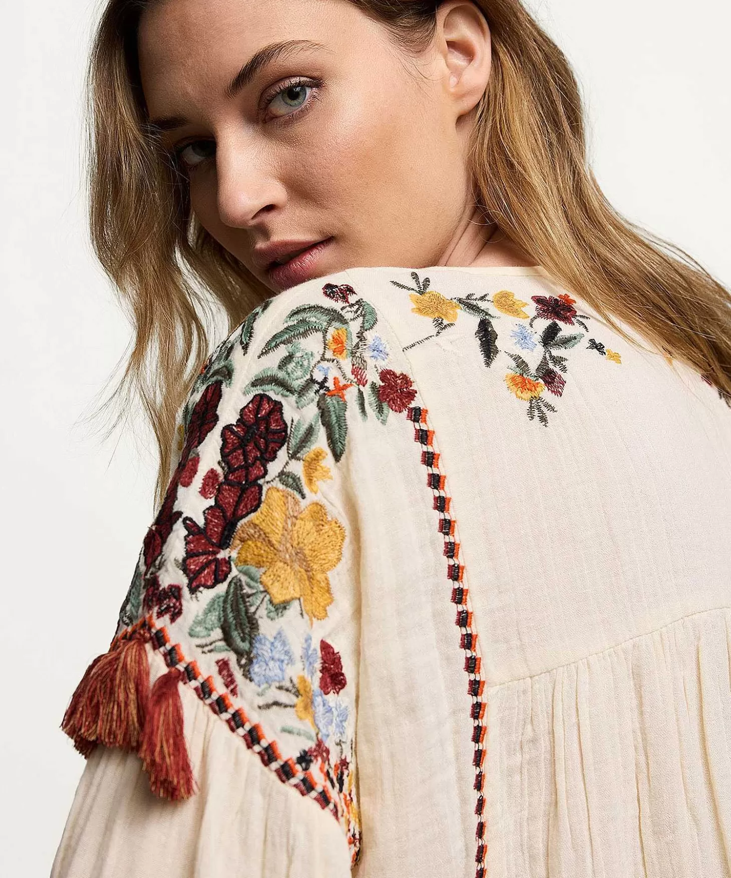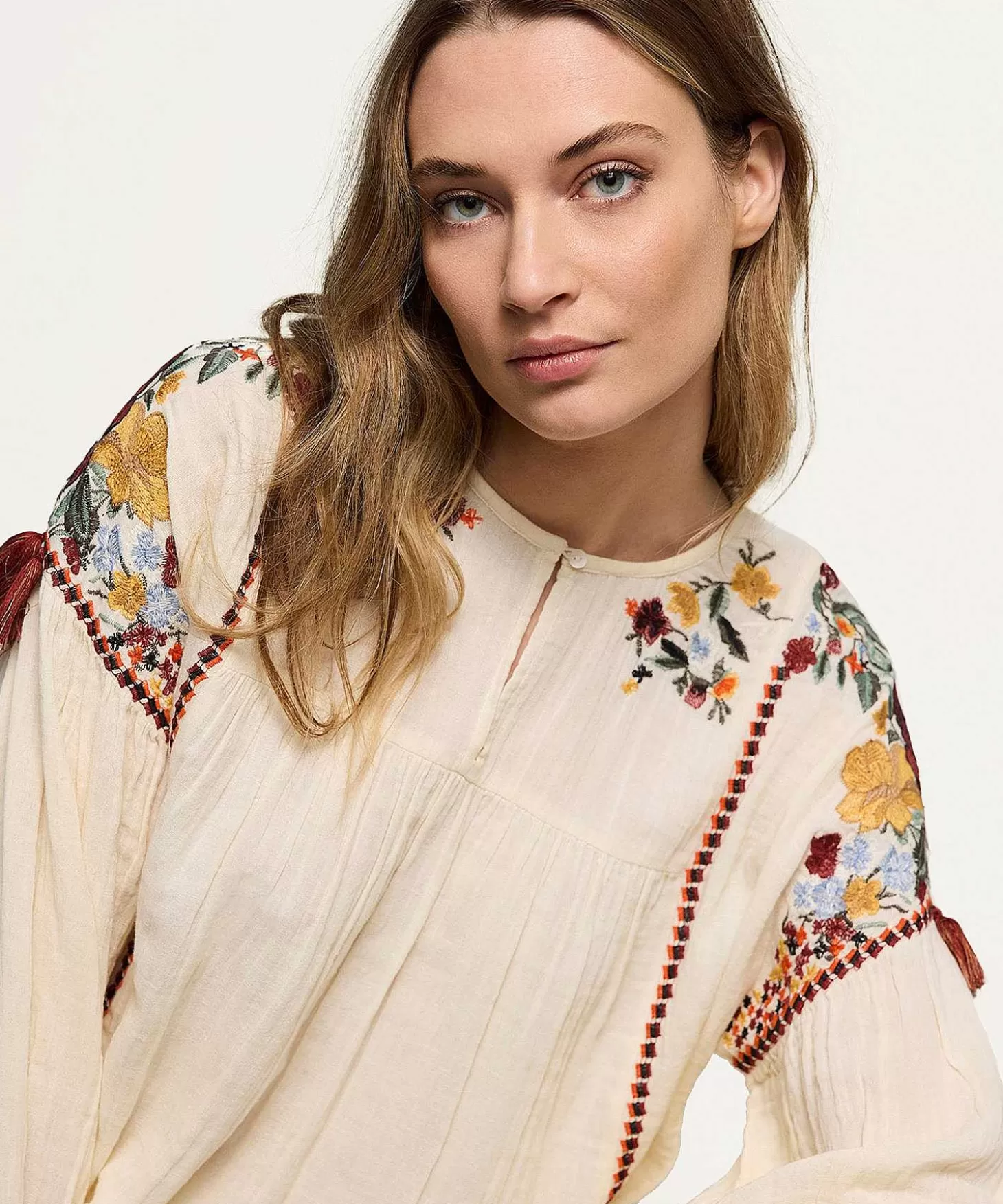 Ontdek De Charme Van Deze Summum Blouse, Jouw Nieuwe Must-Have Voor Je Garderobe. Het Chique Bloemborduursel, Gecombineerd Met De Elegante Pofmouwen En Het Unieke Borduursel Aan De Onderkant Van De Mouwen, Maakt Deze Blouse Tot Een Ware Blikvanger. Door Het Ademende Katoen Geeft Deze Blouse Je De Hele Dag Door Een Comfortabel Gevoel. Samenstelling: 100% Katoen.
