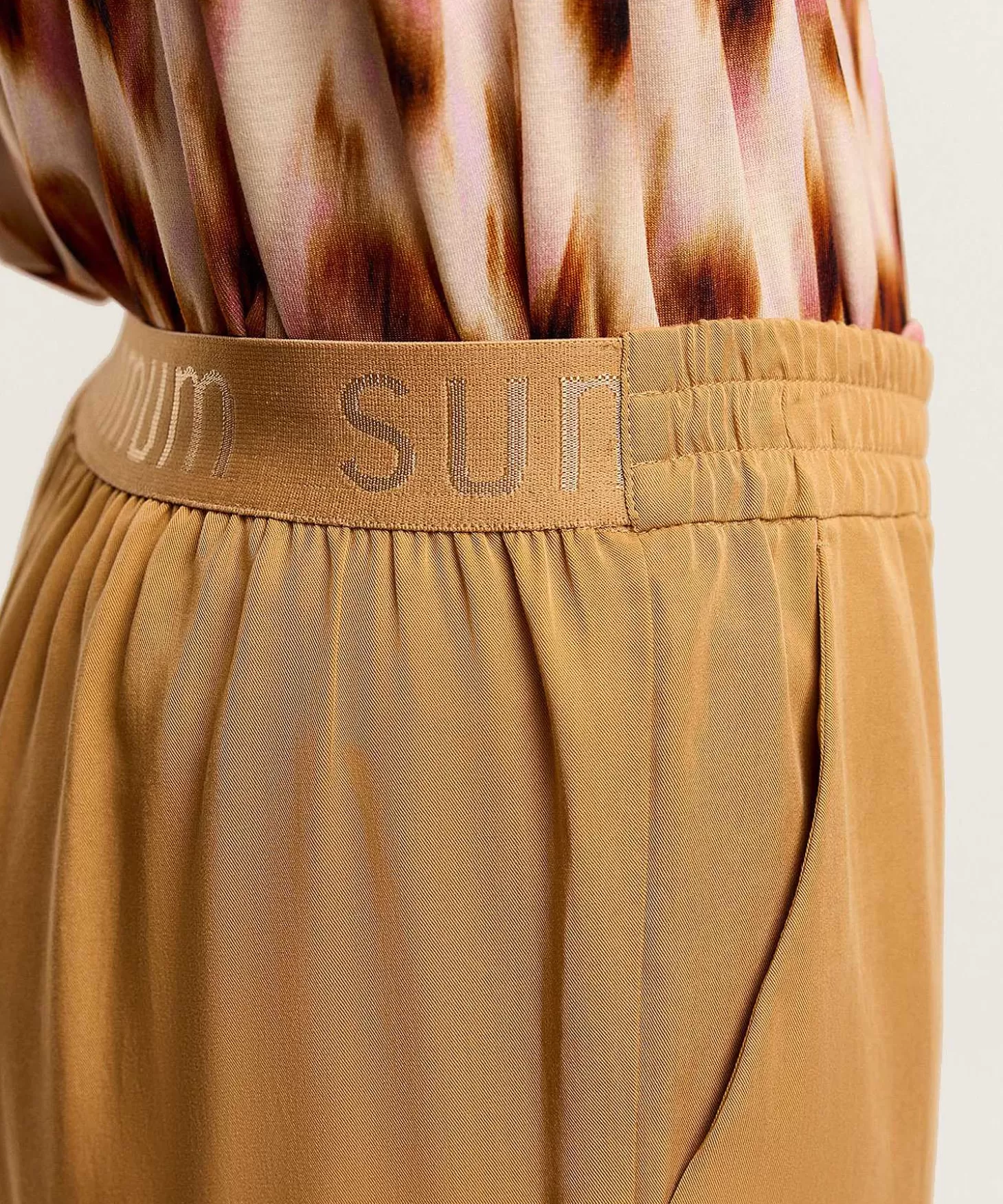 In Soepele Lyocell Flirt Deze Summum Broek Met De Zomerse Palazzo. In Pretty Pink Of Zanderig Camel Met Een Elastische Tailleband (Achter Met Logoletters), Praktische Steekzakken En Een Rechte Wijde Pijp Is Ze Klaar Voor Zomerse Avonturen. De Lyocell Oogt Chique Met De Zachte Glans En Draagt Licht En Luchtig.