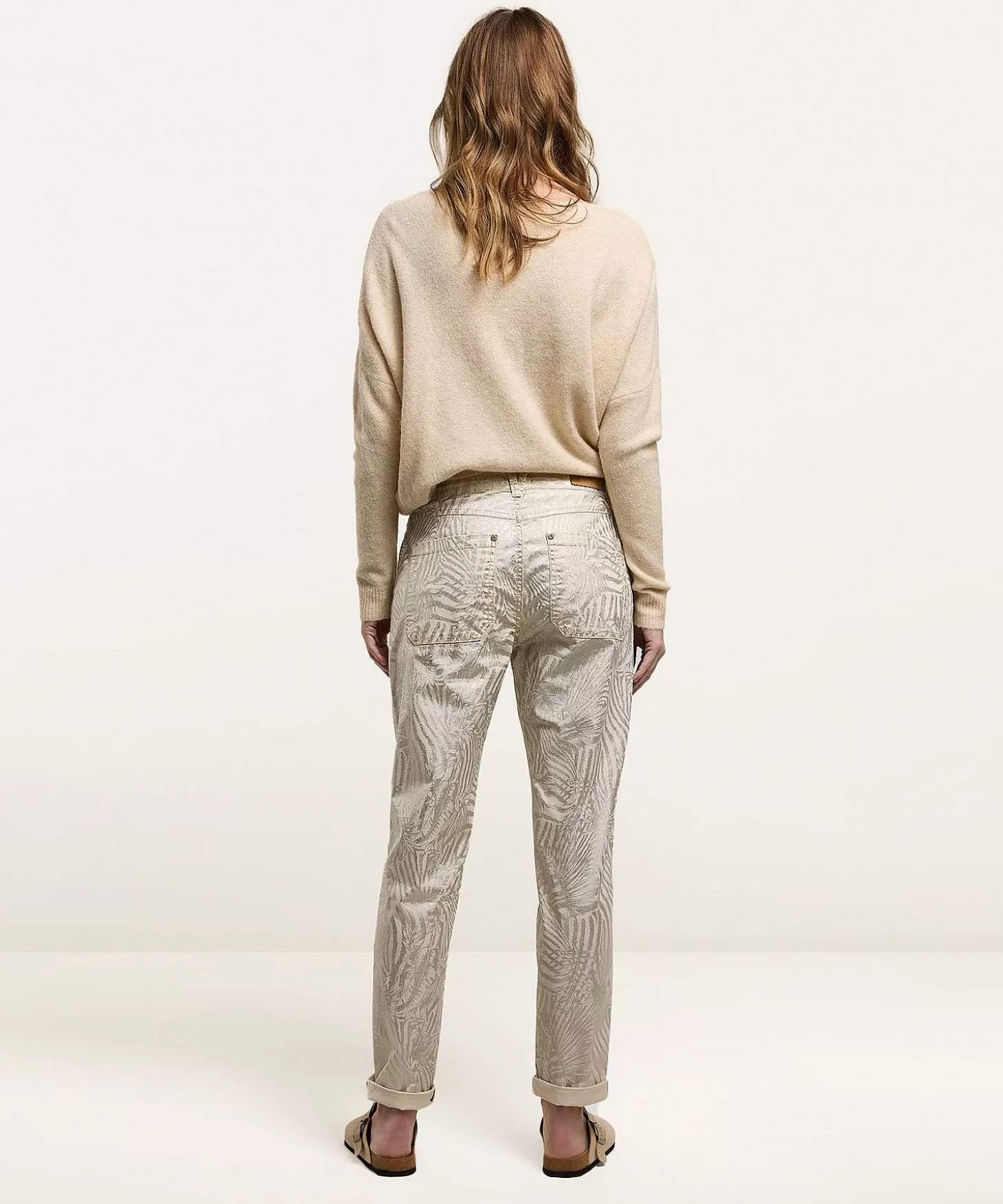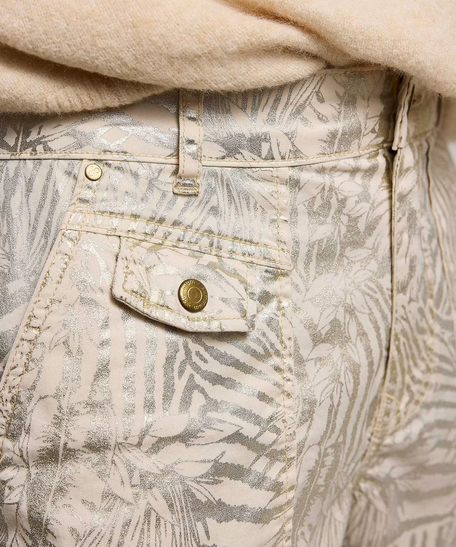 Maak Een Statement Met Onze Summum Coated Loose Fit Jeans Metallic Leaf, Een Unieke Toevoeging Aan Je Garderobe. Met Zijn Ecru Kleur En Sprankelende Metallic Leafs, Straalt Deze Broek Een Onmiskenbaar Hippe Vibe Uit. Gemaakt Van Een Comfortabele Blend Van 97% Katoen En 3% Elastan, Biedt Deze Broek Niet Alleen Stijl, Maar Ook Bewegingsvrijheid. De Gouden Knoopjes Voegen Een Vleugje Luxe Toe Aan Het Geheel, Terwijl De Zilveren Metallic Details Een Eigentijdse Twist Geven. Met Grote, Prominente Zakken, Heeft Deze Broek Een Stoere Uitstraling Met Een Vleugje Elegantie. Combineer Hem Met Een Eenvoudige Top En Sneakers Voor Een Trendy Look, Of Kleed Hem Op Met Een Blouse En Hakken Voor Een Avondje Uit. Laat Je Creativiteit De Vrije Loop En Rock Deze Broek Met Zelfvertrouwen En Stijl! Samenstelling: 97% Katoen, 3% Elastan.