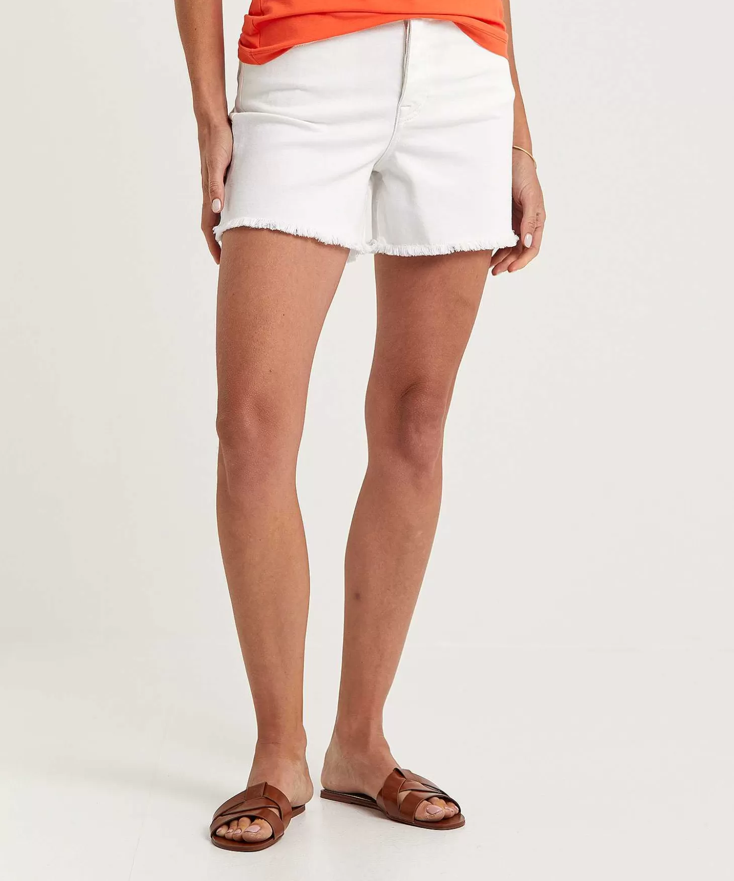 In Witte Denim En 5-Pocket Model Is Deze Summum Short Ready For Summer. Wat Een Tijdloze Korte Broek Met Haar Zomerse ‘Kleur’, Korte Franje Aan De Pijpjes En Relaxte Fit. Zie Jij De Eindeloze Combinatiemogelijkheden Al?
