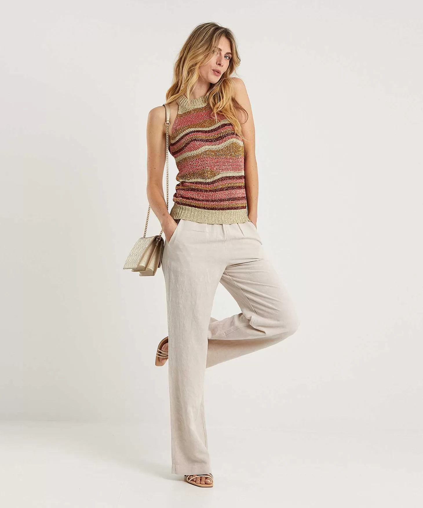 Enjoy The Summer Met Deze Summum Haltertop Van Lurex Ajour. Luchtig En Open Gebreid Met Een Golvend Patroon In Chique Kleurtjes En Een Aansluitende Fit – Is Dit Topje Tres Chique! Met Haar Racerback En Sprankelende Lurex Ze Sportief & Klassiek Tegelijk.