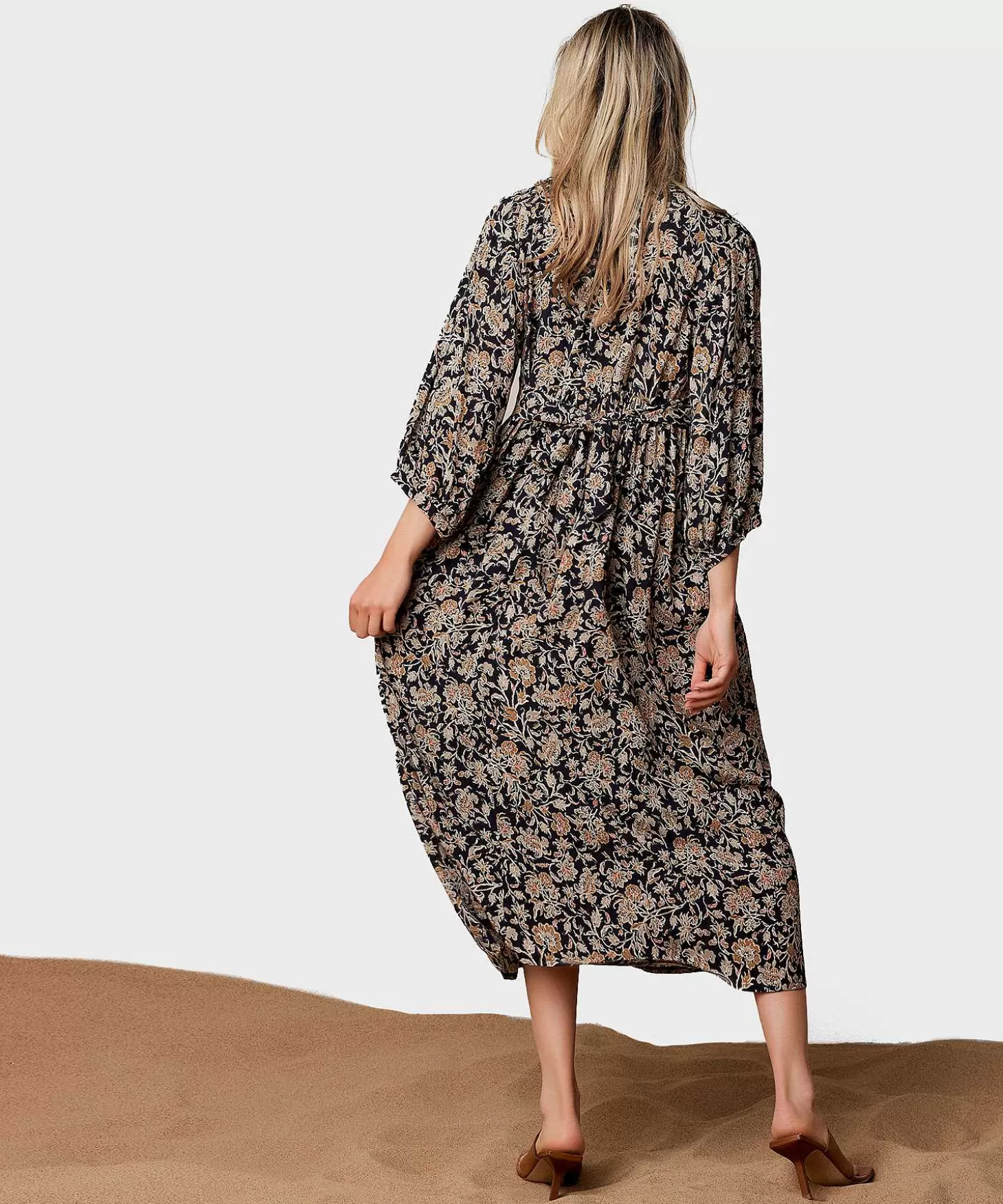 70’S Lovers Eat Your Heart Out! Wat Een Ravissante Summum Jurk Met Haar Petite Fleurs En Vintage Model. Zie Je Haar Typische Jaren 70 (Diepe) V-Hals, Wijde 3/4E Ballonmouw En Hoge Empire-Taille. En Dat Verfijnde Bloemmotief In Grijs, Terra, Olijf En Grijs Op Een Zwarte Basis – Wij Zijn Verkocht! Het Rokgedeelte Is Boven Feminien Geplooid Voor Een Fijne Stofval En Ze Valt Ook Achter Getailleerd Dankzij Haar (Vaste) Striklinten. Draag Haar Met Hoge Laarzen, Instappers, Sneakers Of High Heels En Steel Sowieso De Show.