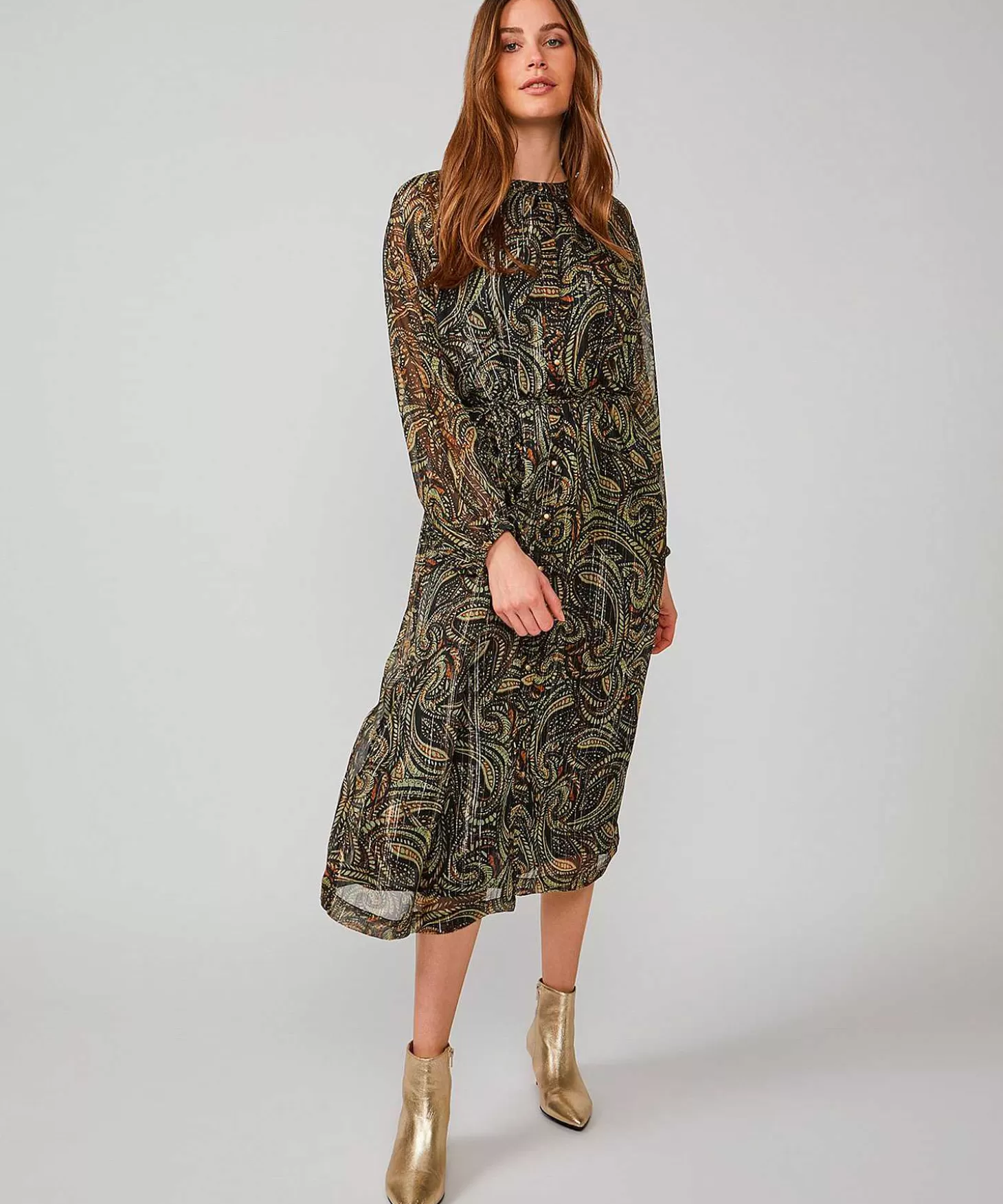 Deze Vrolijke Midi-Jurk Met Swirlprint En Subtiele Gouden Details Van Summum Zet Jou Geheid In De Spotlight. Het Gladde…