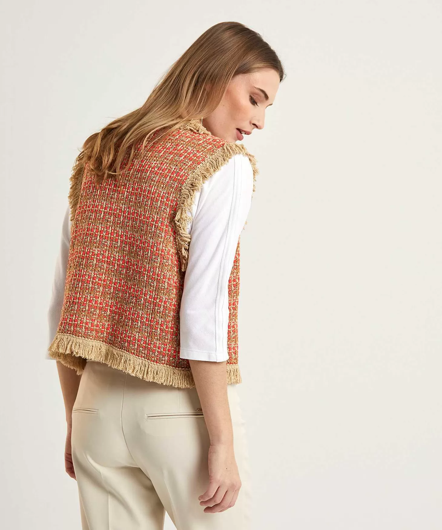 Dit Mouwloze Vestje Van Summum Combineert Franje Met Lurex En Geeft Elke Outfit Een Speelse Twist. Voel Je Haar Reliëf…