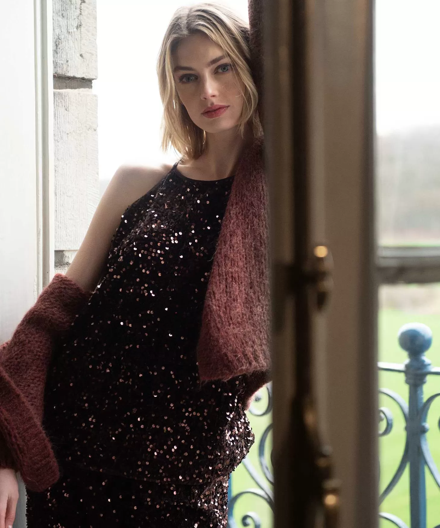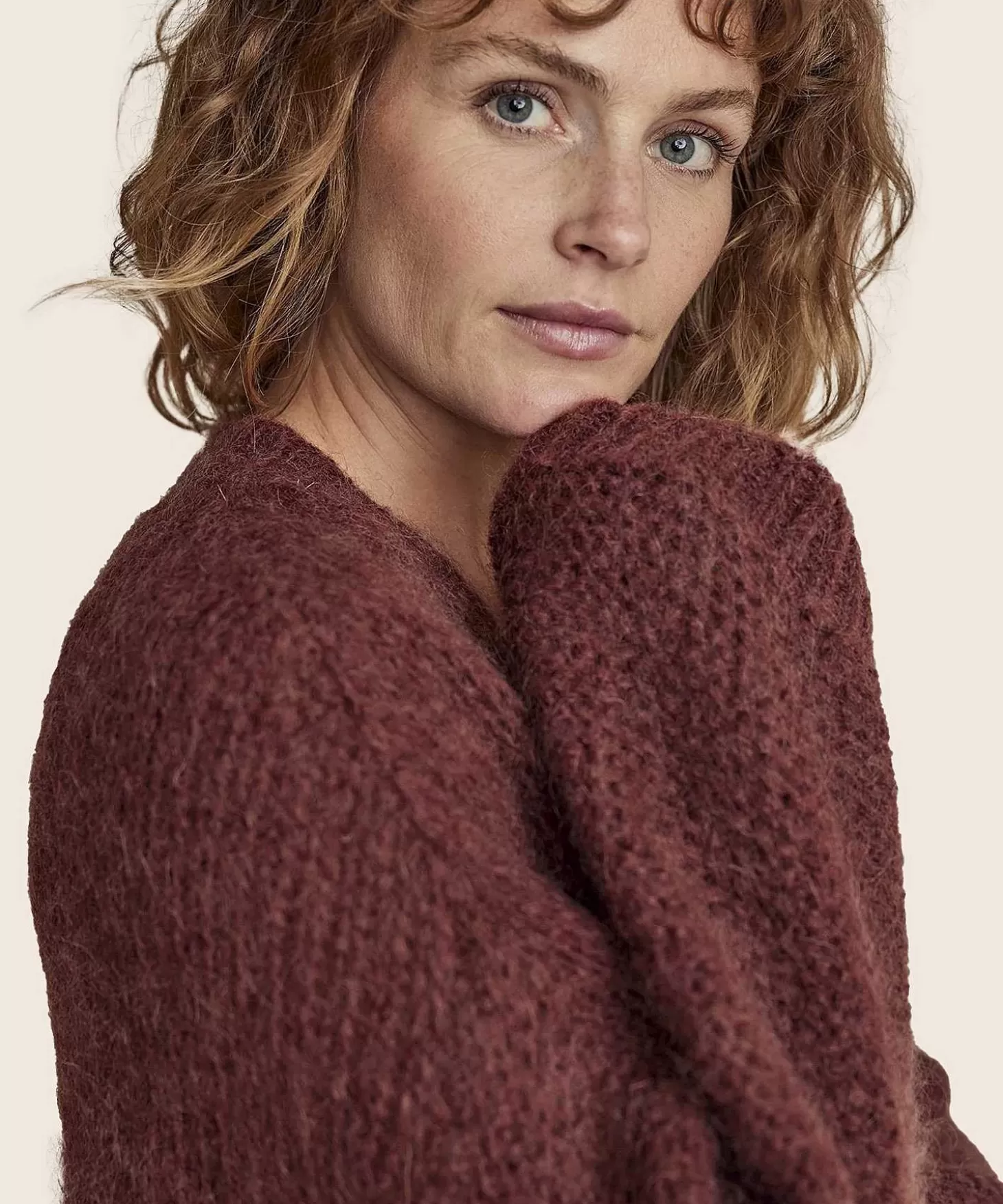 In Een Warme Rode Cherrykleur Die Echt Past Bij De Herfstachtige Tinten Van Bomen En Bos, Neigend Naar Een Beetje Bruin. Dit Ruime Mohair Vest Uit De Collectie Van Summum Heeft Het Allemaal In Zich. Het Vest Valt Losjes Net Boven Of Op De Billen. De Ruime Mouwen Zijn Averechts Gebreid En Hebben Een Boordje En Verlaagde Schouders. Combineer Met De Feestelijke Pailletten Wideleg Broek En Een Aangesloten Top. Of Kies Voor Je Favoriete Jeans. Draag Lekker Losjes Of Stop, Helemaal Van Nu, De Punten Kruislings Over Elkaar In De Band Van Je Broek. Samenstelling: 40% Acryl, 30% Polyamide, 30% Mohair.