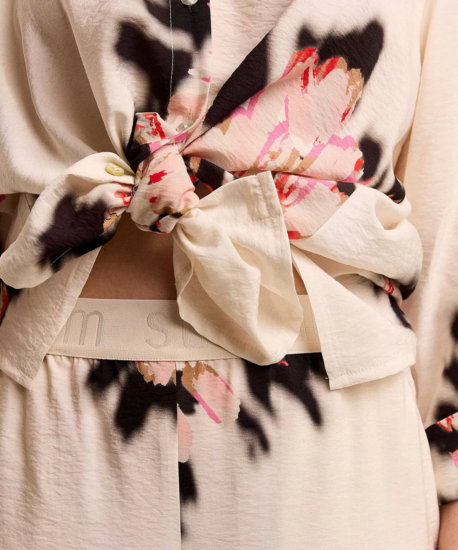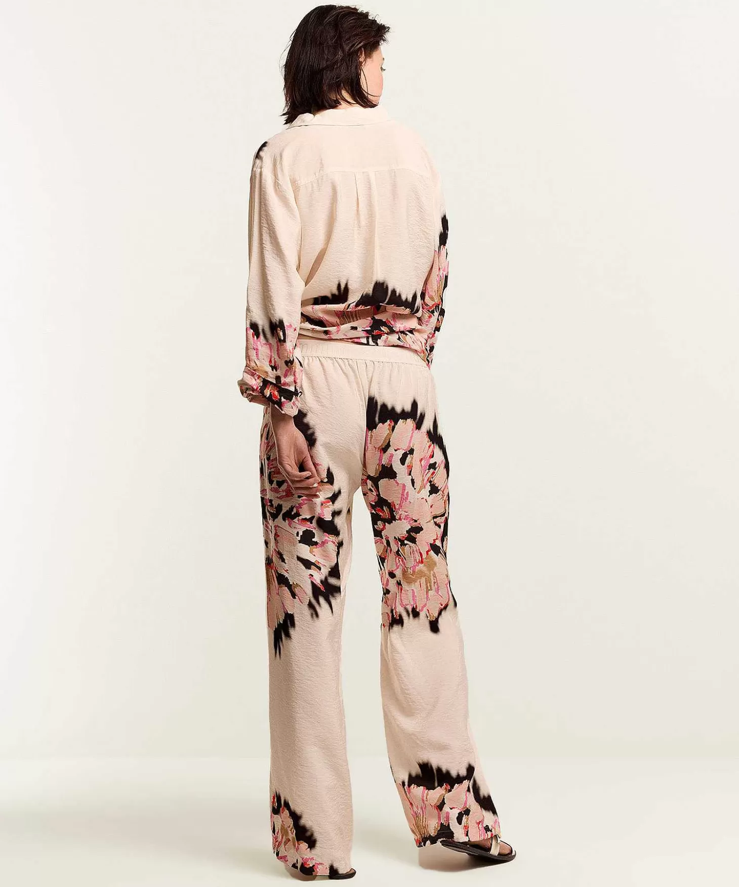 Deze Summum Palazzo Broek Met Maxi Flower Flirt Maximaal Met De Zomer. Wat Een Luchtige Broek Met Haar Crinkle Stof – Licht En Luchtig – En Chique Bloemprint In Pink, Camel En Zwart Op Offwhite. Naast Een Elastische Tailleband Heeft Ze Steekzakken En Een Wijde Pijp.
