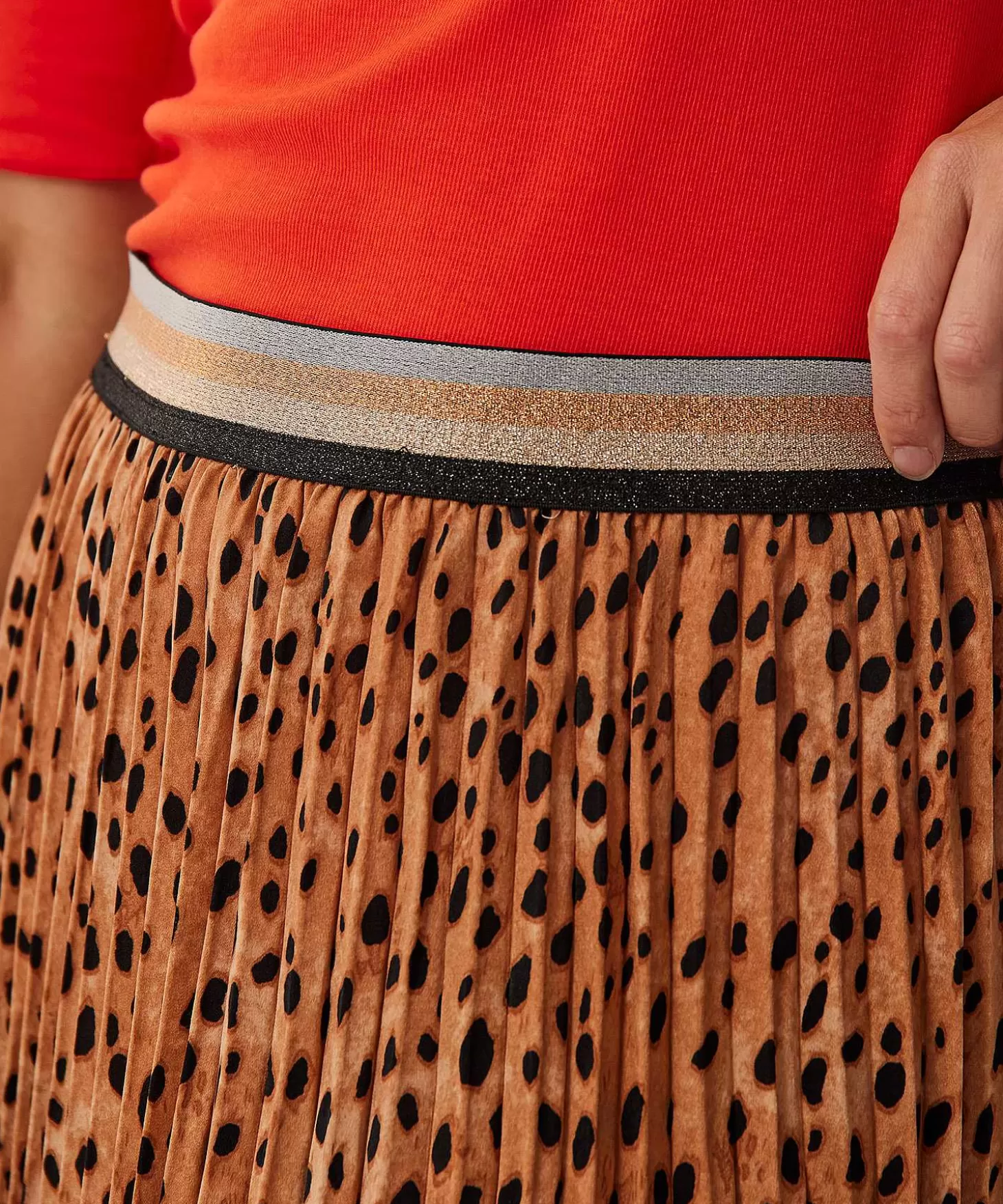 Cheetah Meets Summum Met Deze Plissérok In Verfijnde Animalprint. Vanuit De Elastische Tailleband Met Lurex Strepen Va…