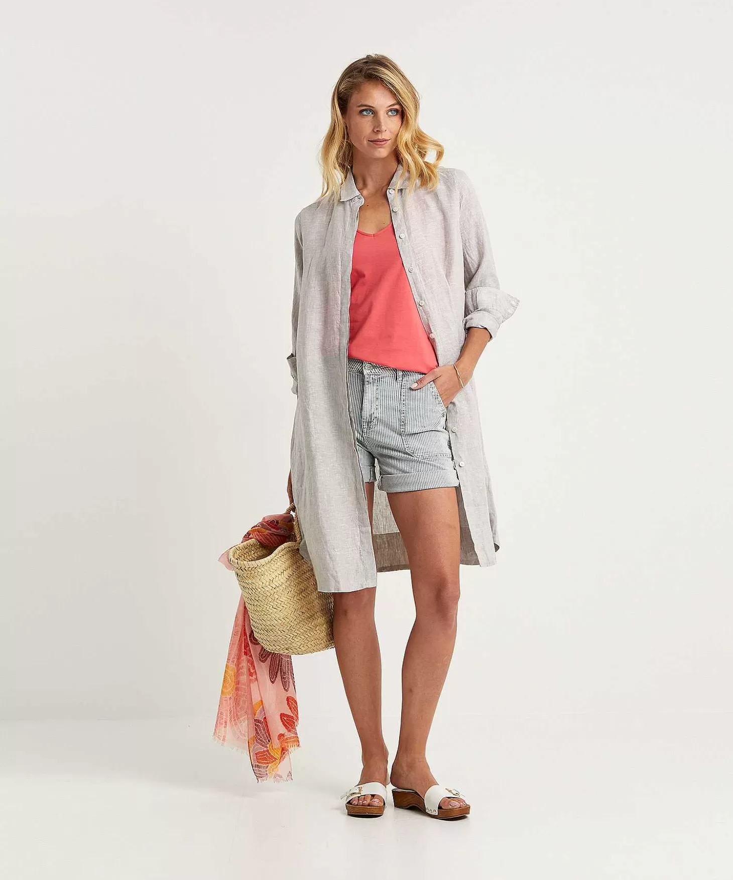 Het Summum Hemdje Met Lurex Bandje Mag Niet In Jouw Garderobe Ontbreken, Het Is Een Echte Essential. In Fris Bright Coral , Night Sky Donkerblauw Of Taupe (Funghi) En Op Twee Manieren Draagbaar (Met Ronde Of V-Hals Voor) Geeft Ze Elke Outfit Kleur En Glamour. Je Draagt Haar Onder Een Blazer, Vest, Blouse Of Jasje En Ze Heeft Een Relaxt Aansluitende Pasvorm. Biologisch Katoen Maakt Haar Nog Duurzaam Ook, Wat Wil Je Nog Meer? Samenstelling: 95% Biologisch Katoen, 5% Elastan.