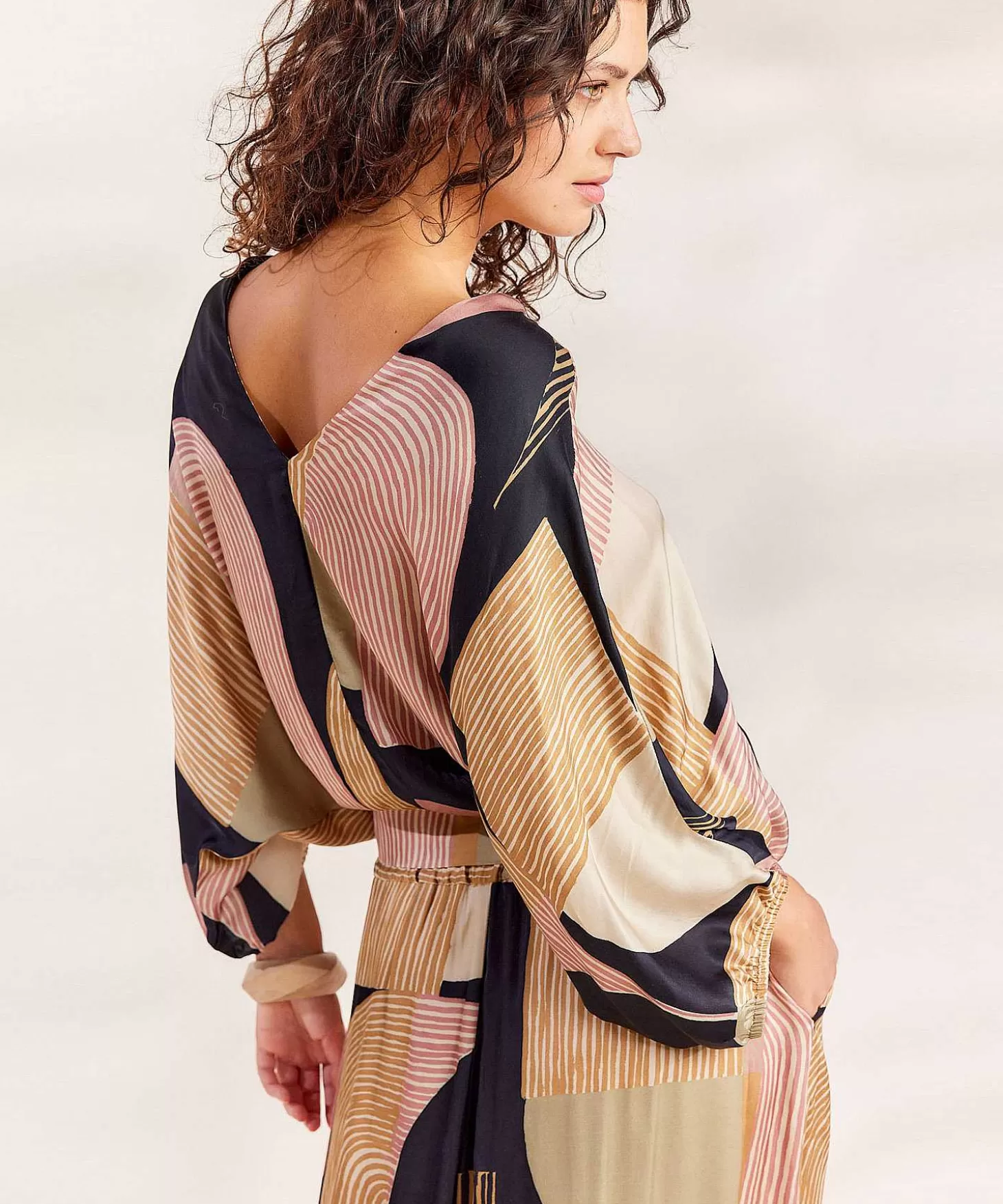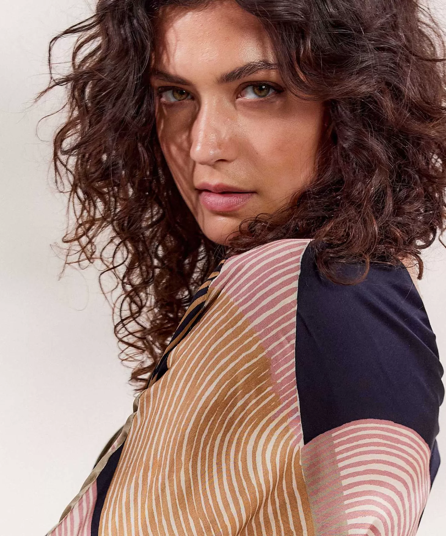 Deze Silky Top Van Summum Met Modern Print Draag Je Op Meerdere Manieren (Reversible). Zie Je Haar Glanzende Satijn Vis…